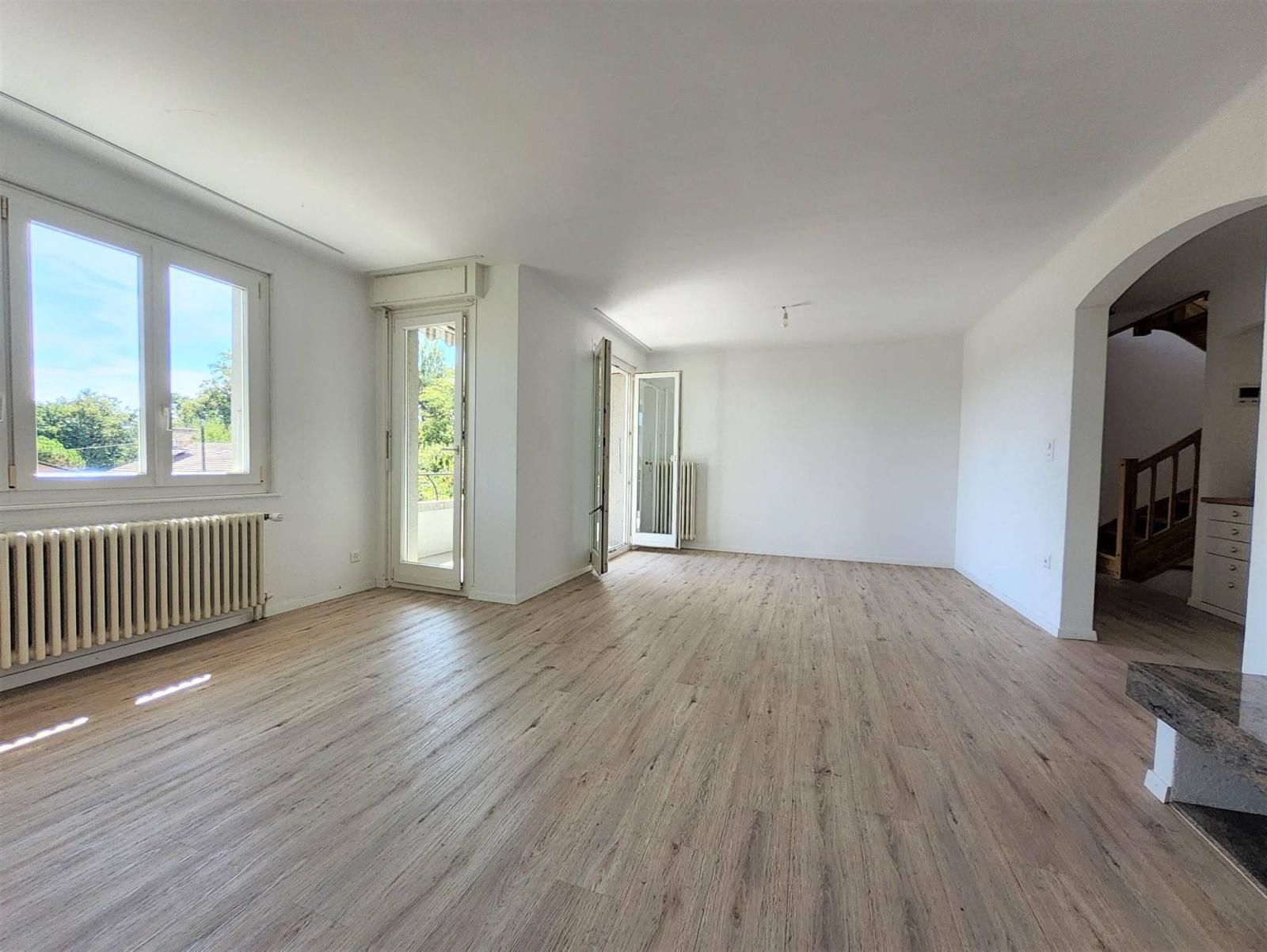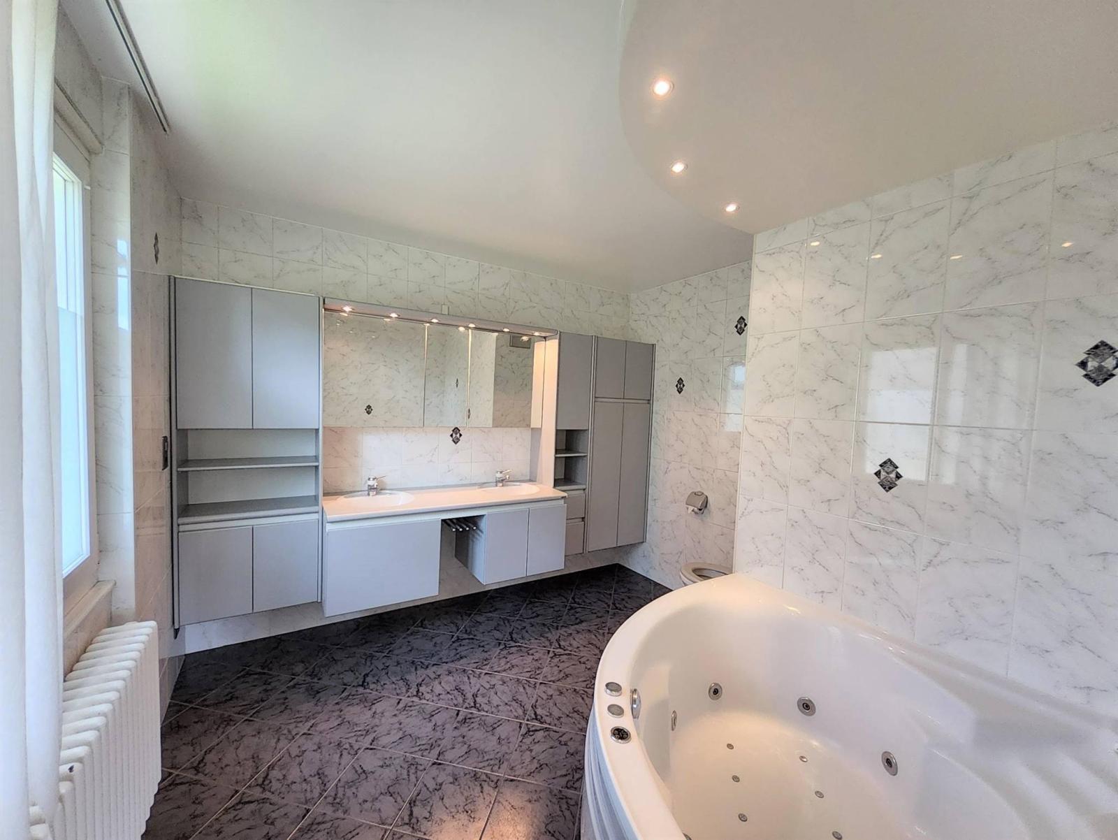 Actuellement partagée en 2 appartements : Un 2.5 pièces simplex d'environ 40 m² au rez de jardin avec une grande terrasse et un 3.5 pièces duplex d'environ 100 m² en étage (accès indépendant) qui profite d'un balcon et d'une grande pièce sous-comble avec vue lac et espace galetas de rangement. Il a aussi une grande cuisine indépendante et un spacieux salon avec cheminée. Il y a donc 3 chambres à coucher (4 possibles) dont la principale de 15 m² et 3 salles d'eau au total.Il y a un bel espace jardin tout autour de la maison, avec un cabanon de rangement et le quartier est relativement calme.