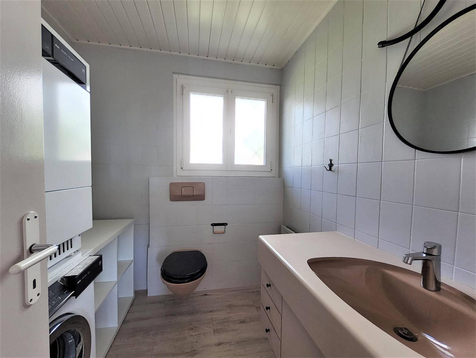 La maison de 1964 a été rénovée une première fois en 1994 puis le 1er étage (donc le 3.5 pièces) a été refait en 2001 (double vitrage) puis en 2014 (peintures + sol des couloirs et salon). Seule la salle d'eau avec l'emplacement pour la colonne de lavage et le WC visiteurs n'a pas été refaits.Quand au rez, le 2.5 pièces est rénové en 2023 : les sols et peintures du séjour, de la chambre, et de la salle de bain (+ équipements). Seule l'agencement de cuisine est plus ancien. Cependant l'équipement tel que le four, la plaque vitro cérame et le réfrigérateur sont de 2013.