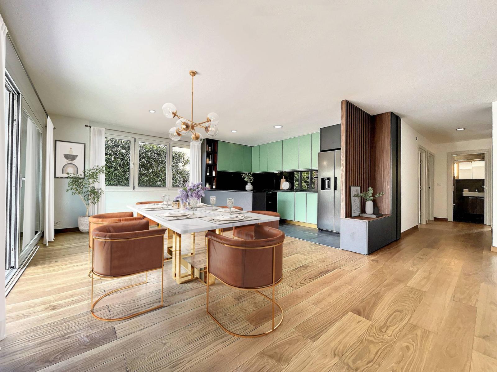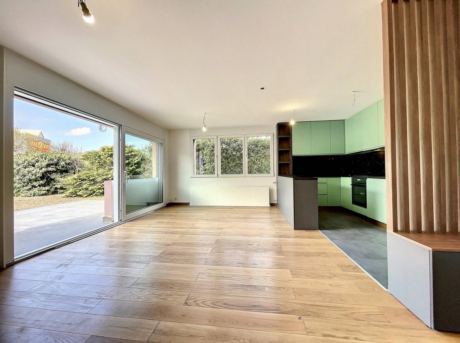 Spacieux appartement de 4.5 pièces d'environ 128 m² pondérées (93 m² habitables, jardin de 350 m² ainsi que une grande terrasse de 25 m²).