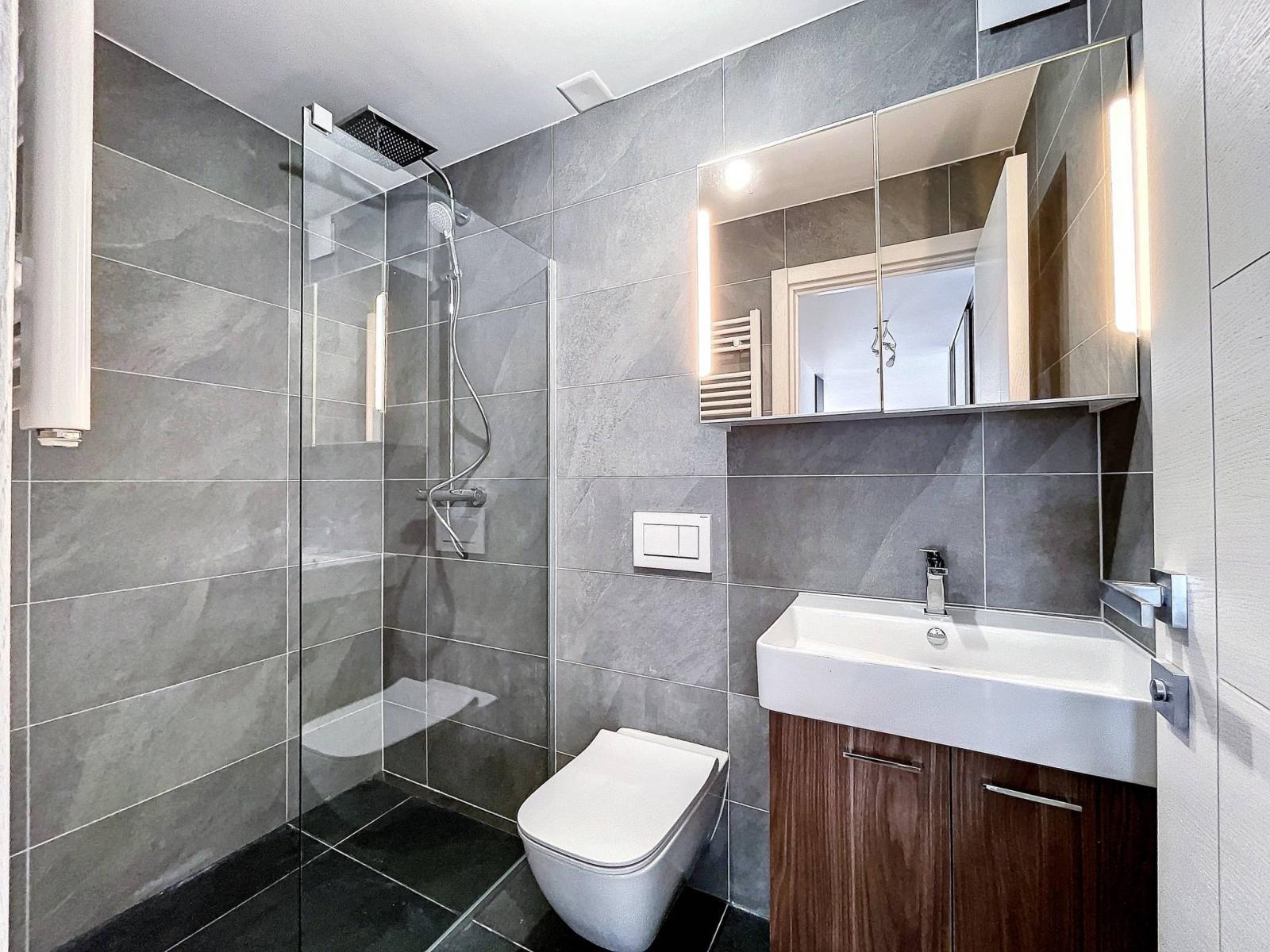 Grâce à son orientation Sud-Ouest et à ses nombreuses fenêtres, cet appartement bénéficie d'une belle luminosité et d'un beau dégagement sur les montagnes.