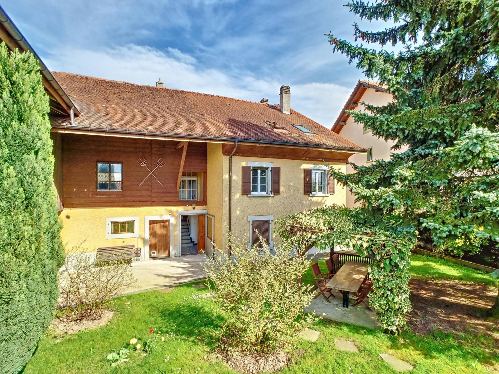 Dans le charmant village de Chapelle-sur-Moudon, à moins de 15 minutes d'Echallens et 30 minutes de Lausanne, se trouve une jolie ferme vaudoise datant de 1892 sur une parcelle de 1'996 m².