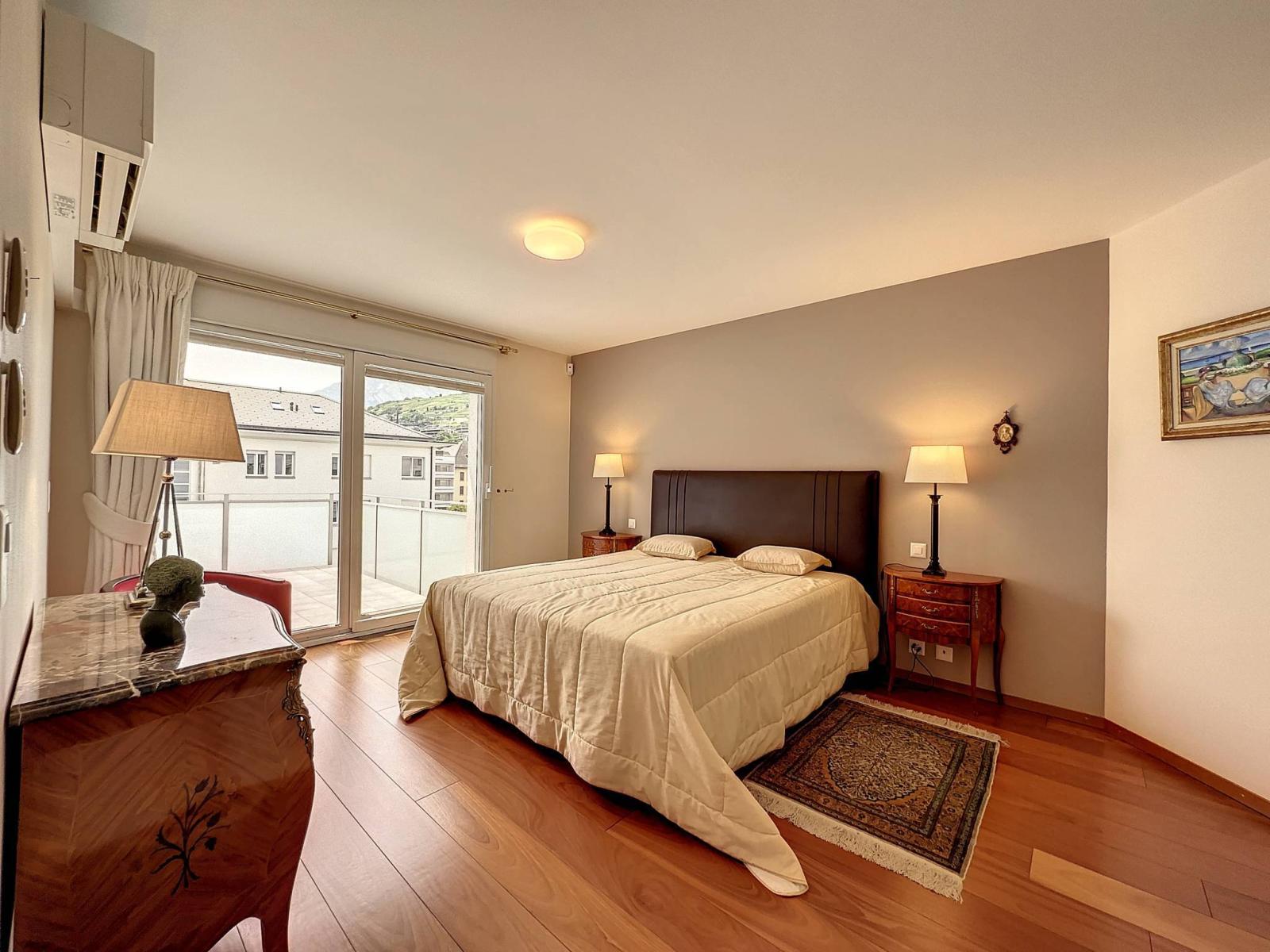En duplex de 4ème et 5ème étages d’une résidence de standing hautement sécurisée de 16 appartements et bureaux construite en 2008, ce grand appartement en parfait état offre un cadre de vie unique en ville de Sion.