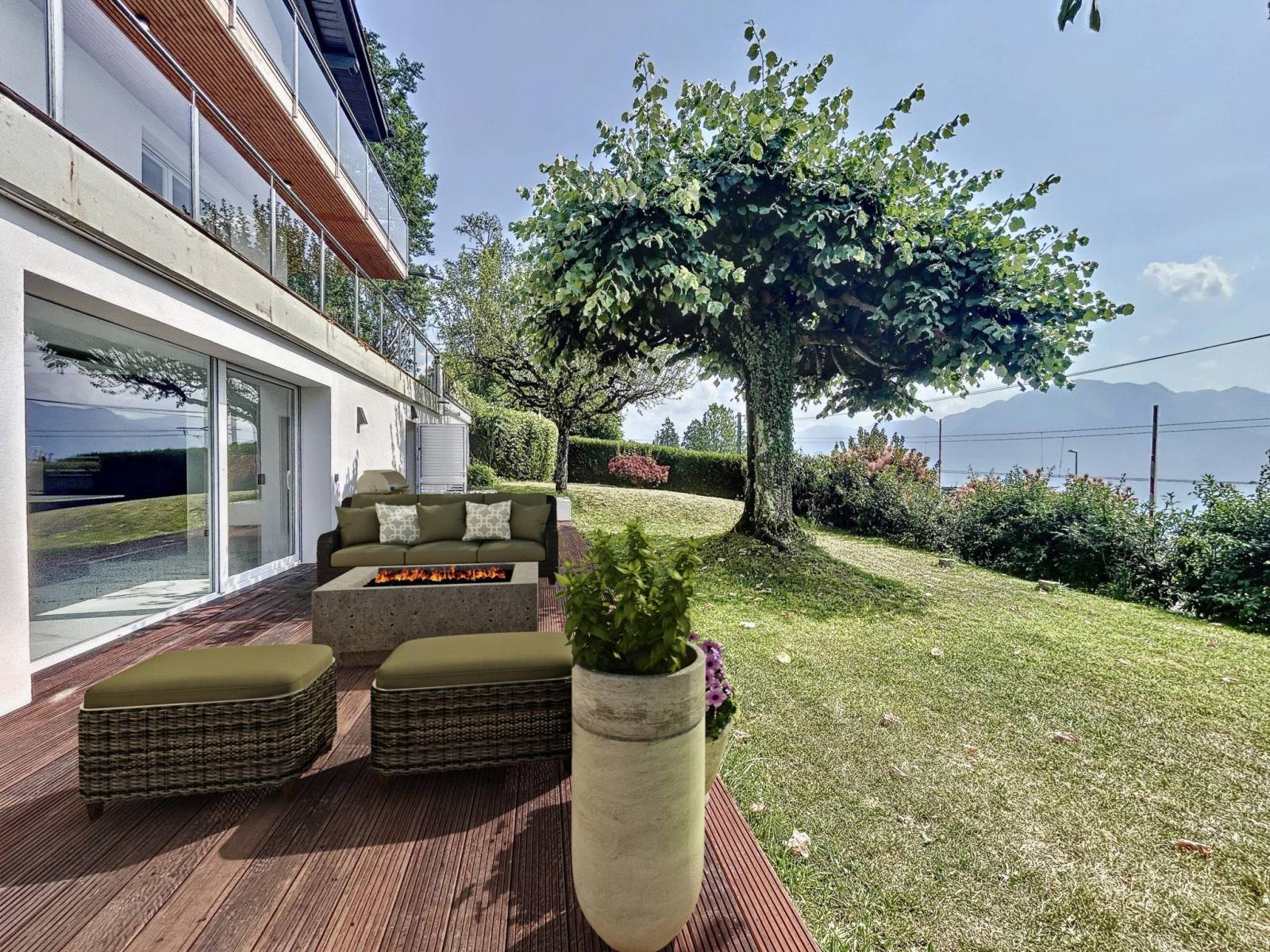 De par son orientation Sud et ses grandes fenêtres, cet appartement bénéficie d'une luminosité exceptionnelle tout au long de la journée ainsi que d'une vue imprenable sur le lac Léman et les montagnes.