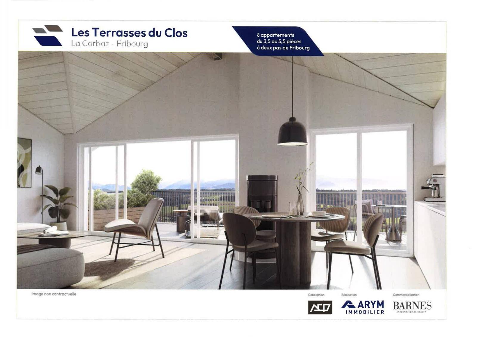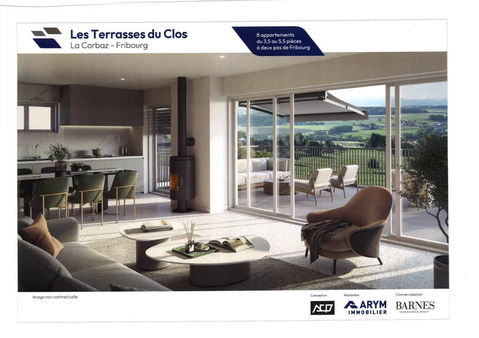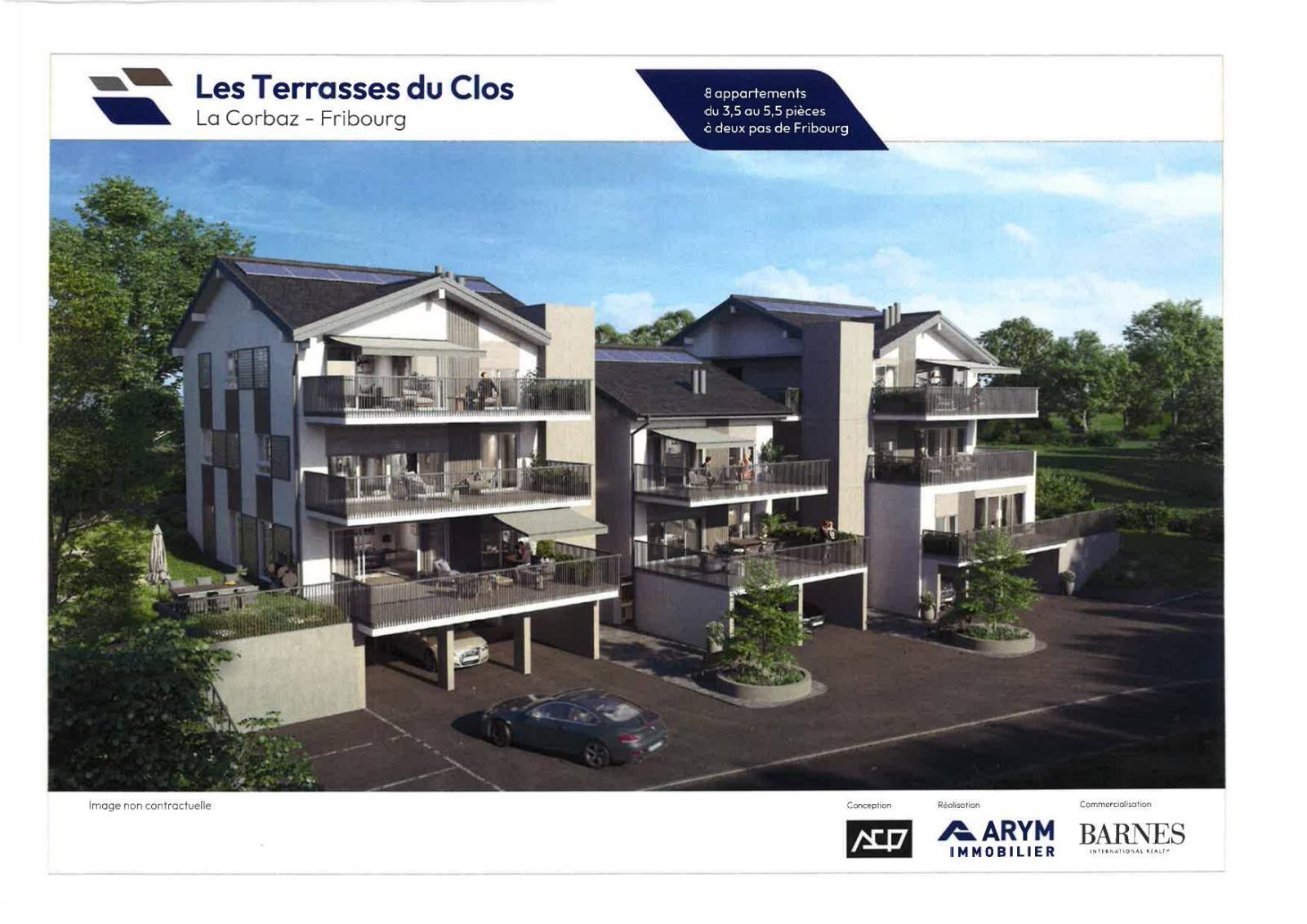 La nouvelle résidence « Les Terrasses du Clos » est située dans un cadre bucolique, au cœur de la charmante commune de la Corbaz, qui se trouve à mi-chemin entre Courtepin et Fribourg.