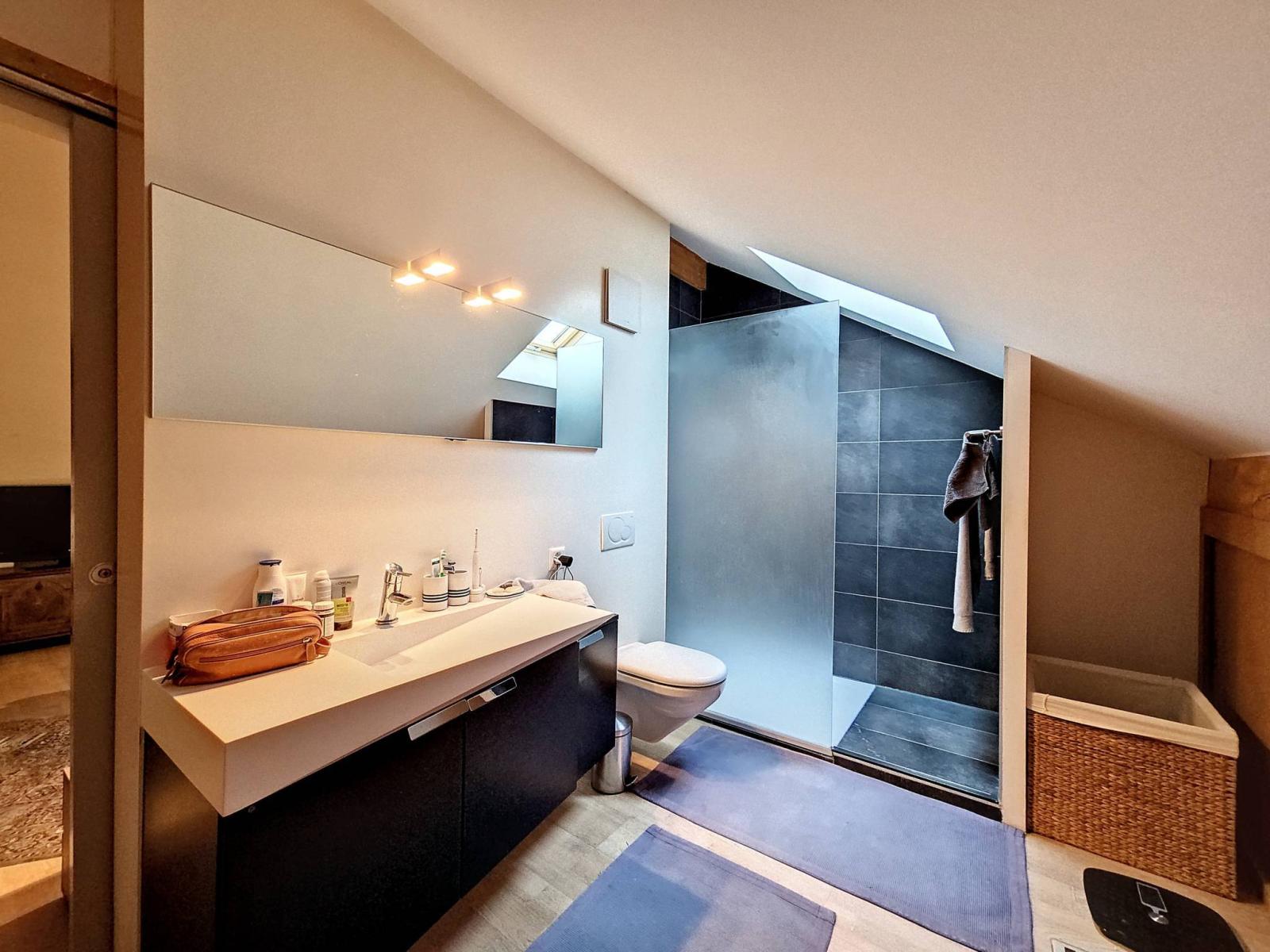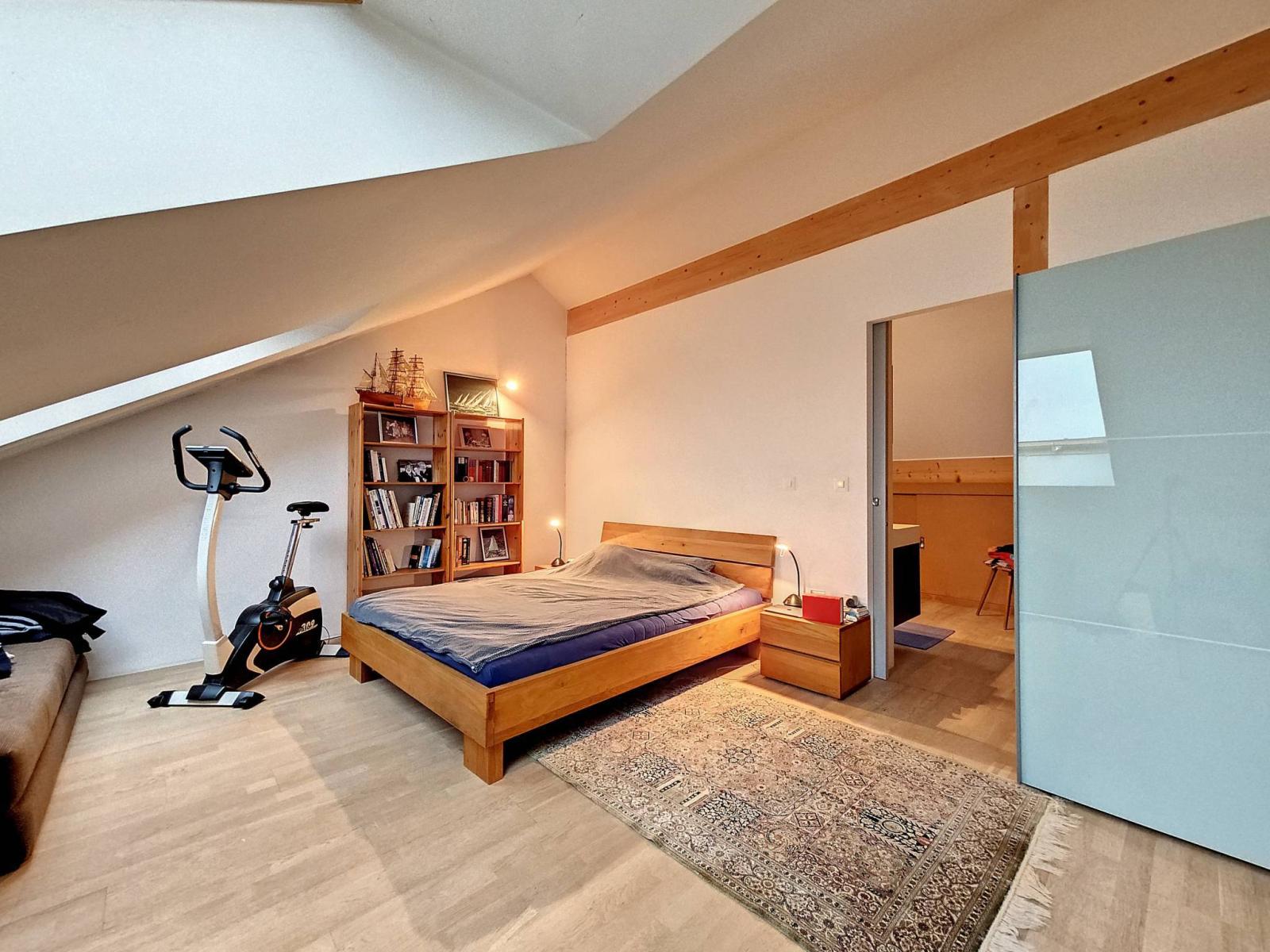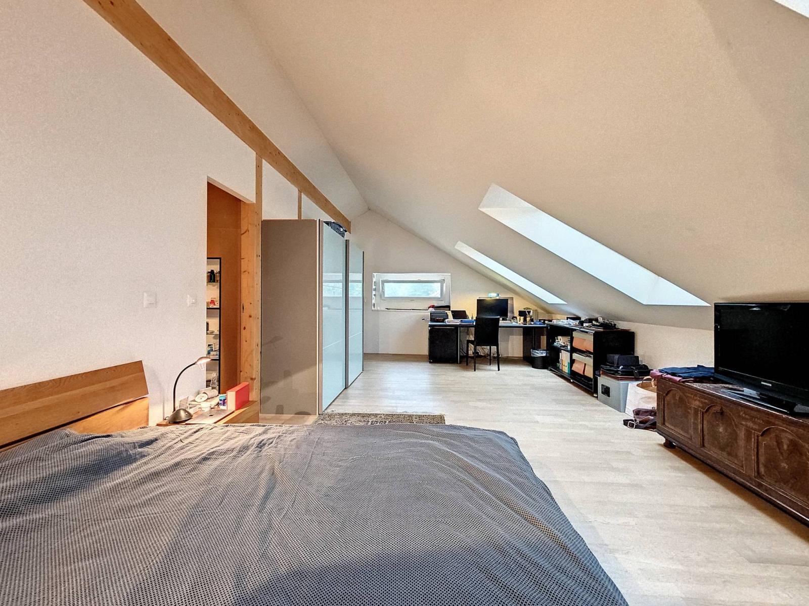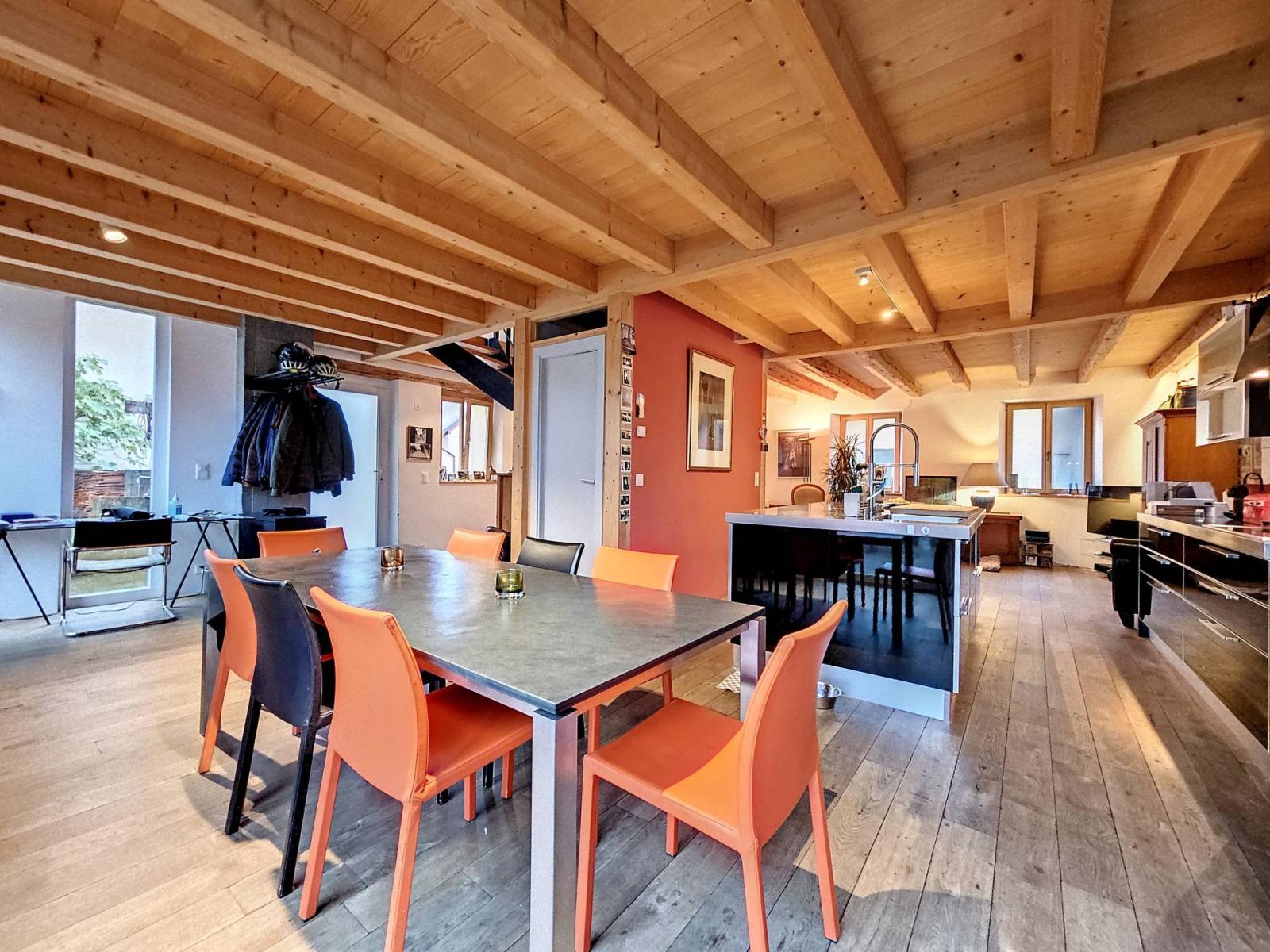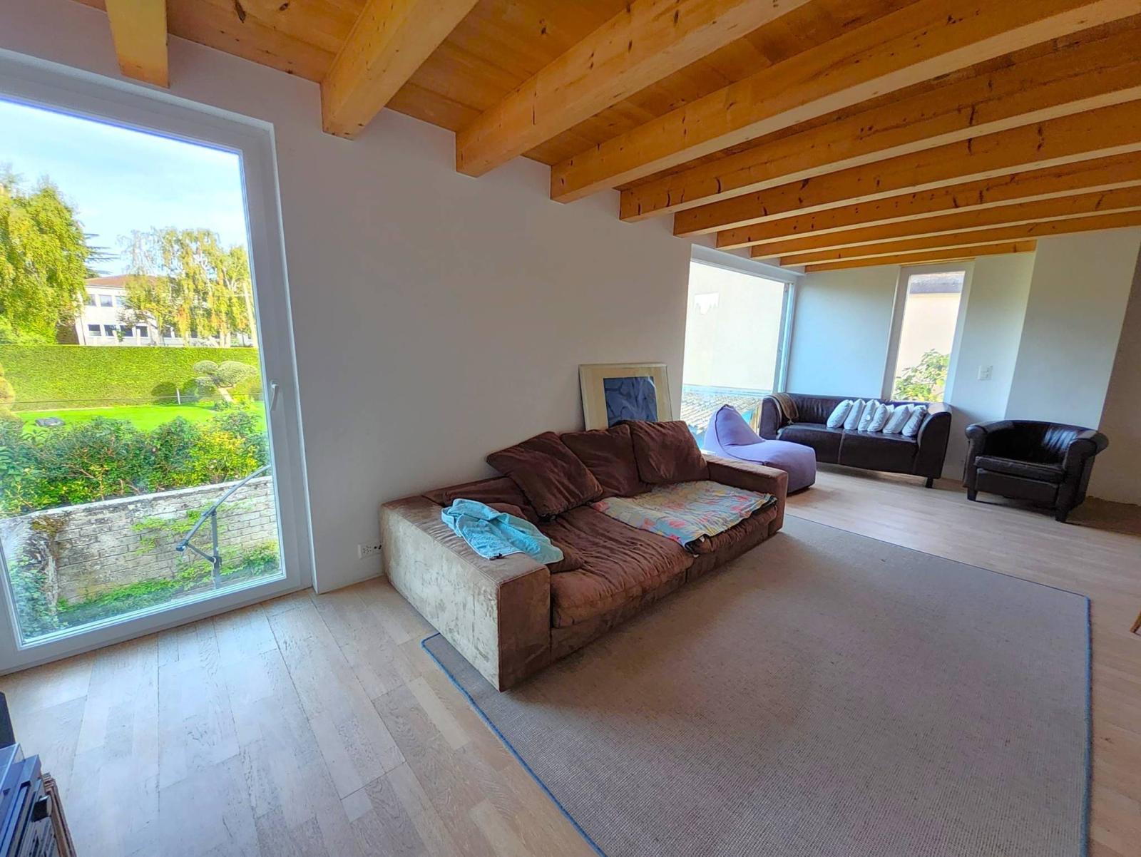 - Atout financier : Au rez-de-chaussée se trouve un grand studio avec un esprit loft d'environ 55 m² habitables (avec cuisine et salle d'eau) rénové en 2022 (parquet et peinture) loué CHF 1'400.-/mois . Cette rente sera une aide appréciée au moment du plan de financement, pour compenser une bonne partie de l'hypothèque.
