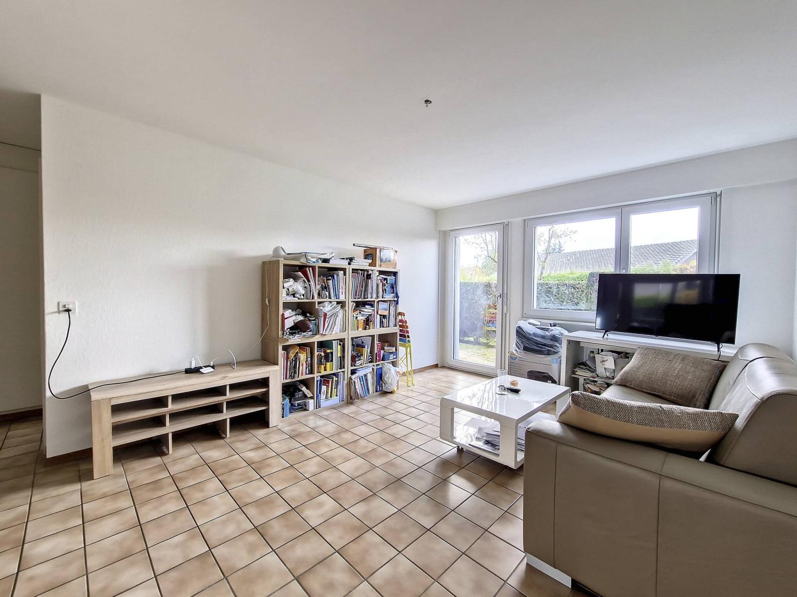 L'appartement est actuellement loué CHF 1'200.- /mois charges et place de parc incluses.