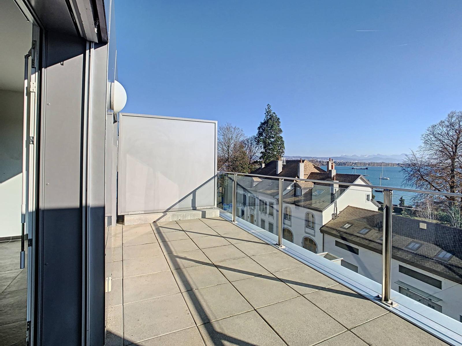 Ce bien est situé au 3ème étage et dernier étage, est traversant et jouit de belles vues dégagées sur la ville ou le lac depuis les 3 terrasses spacieuses (63 m² au total) dont il dispose.