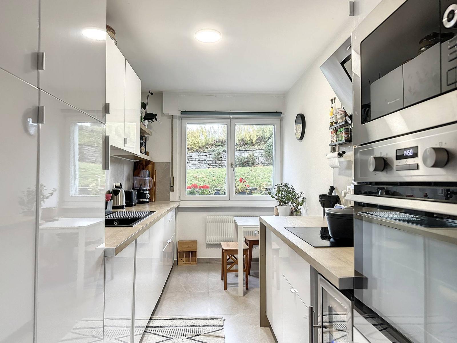 Par sa situation calme et exceptionnelle à 2 pas du centre ville de Fribourg et de l'école primaire, ce logement offre de nombreux atouts, notamment par sa rénovation totale effectuée avec goût et avec des matériaux de qualités.