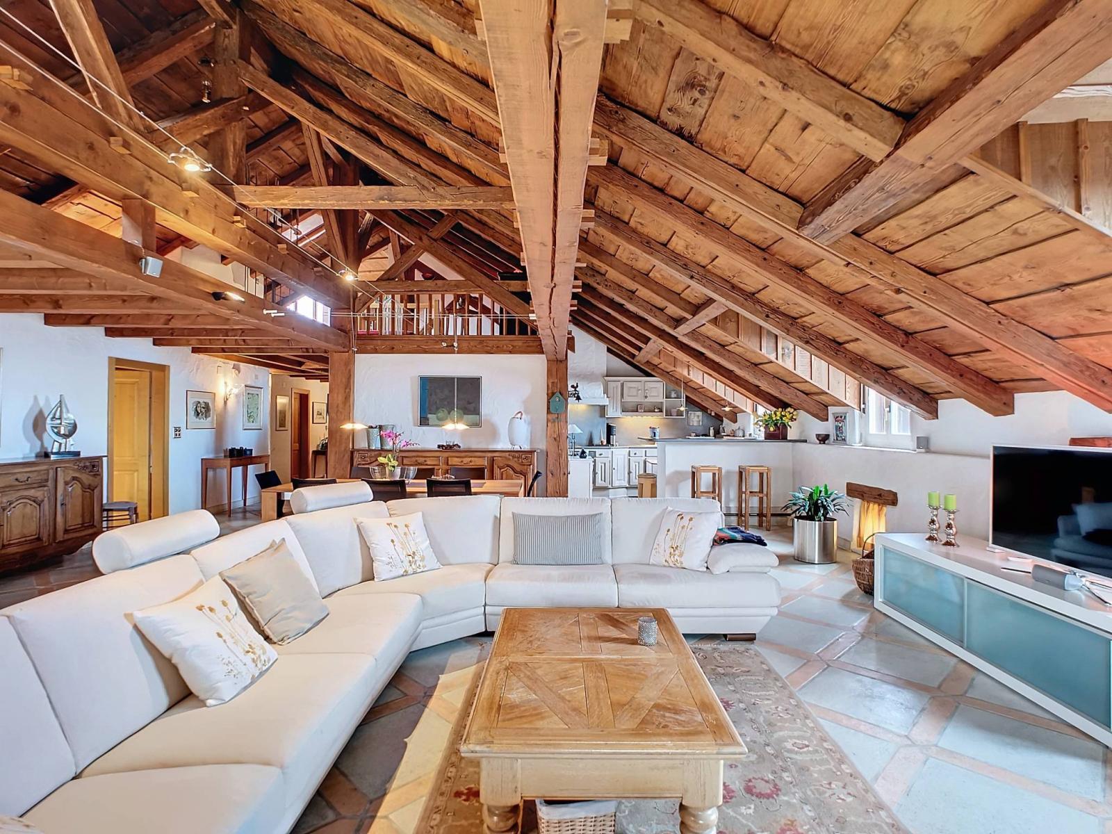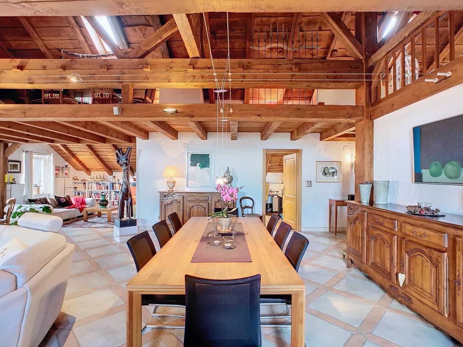 Le cachet de l’ancien se conjugue parfaitement avec les matériaux de qualité offrant tout le confort moderne de ce spacieux logement.