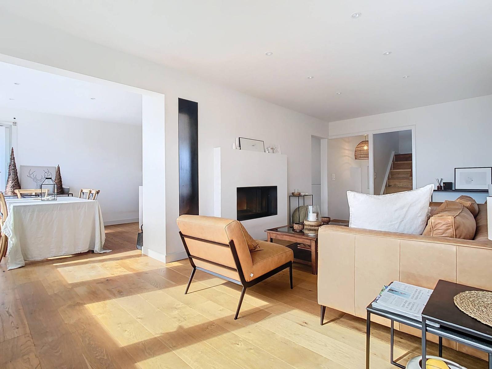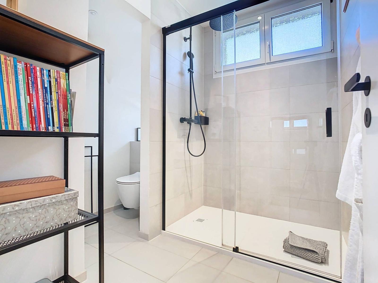 Réparti sur deux niveaux habitables, ce bien d’architecture classique, aux allures contemporaines et minimales est distribué de manière très fonctionnelle :