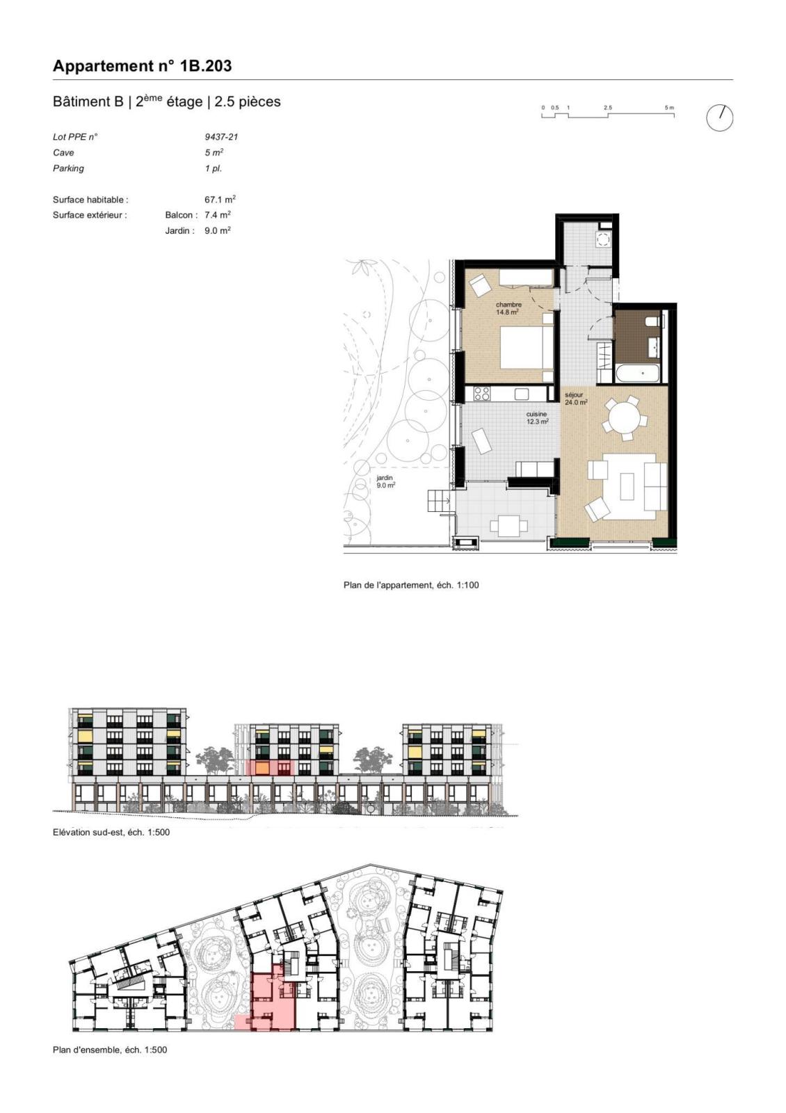 28 appartements de 2.5 pièces entre 49 et 68 m² + loggia105 places de parc, dont 38 places visiteurs