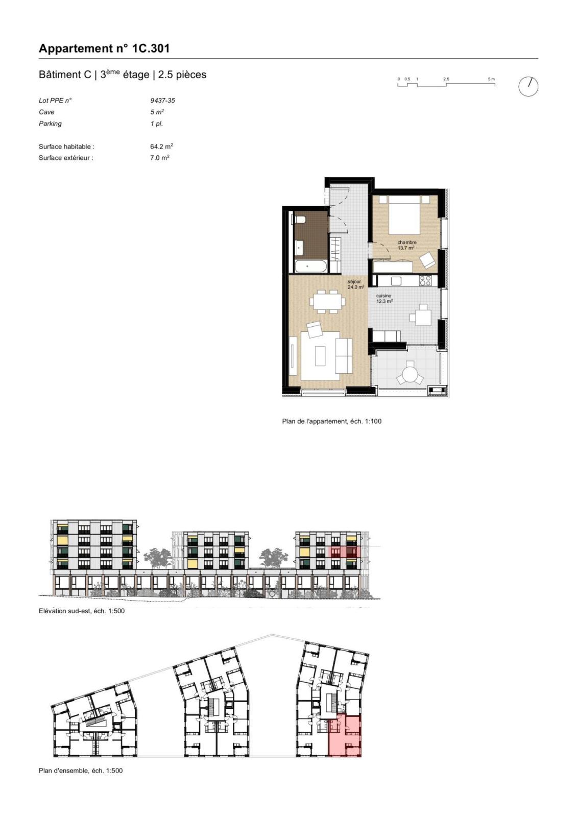 28 appartements de 2.5 pièces entre 49 et 68 m² + loggia105 places de parc, dont 38 places visiteurs