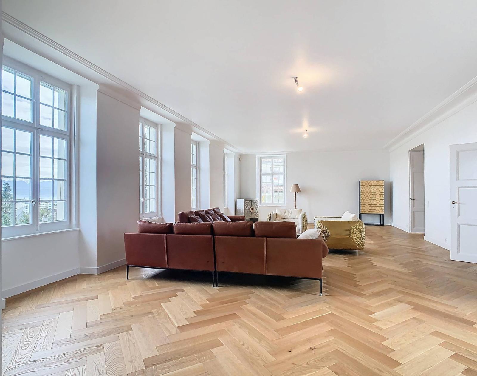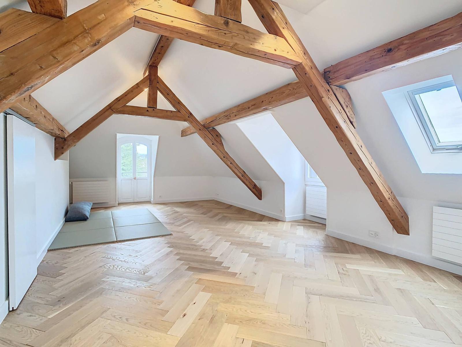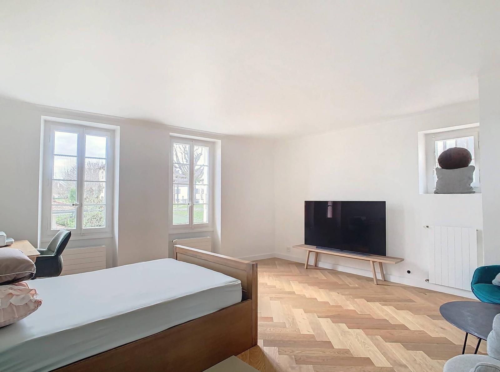 Elle a bénéficié d'une importante rénovation en 2023 et les matériaux sont de qualité, tels que les sols en parquet massif, la cuisine, les escaliers en pierre naturelle, son espace piscine, etc... et les généreux volumes ( 2'106m³ ) ont été préservés.