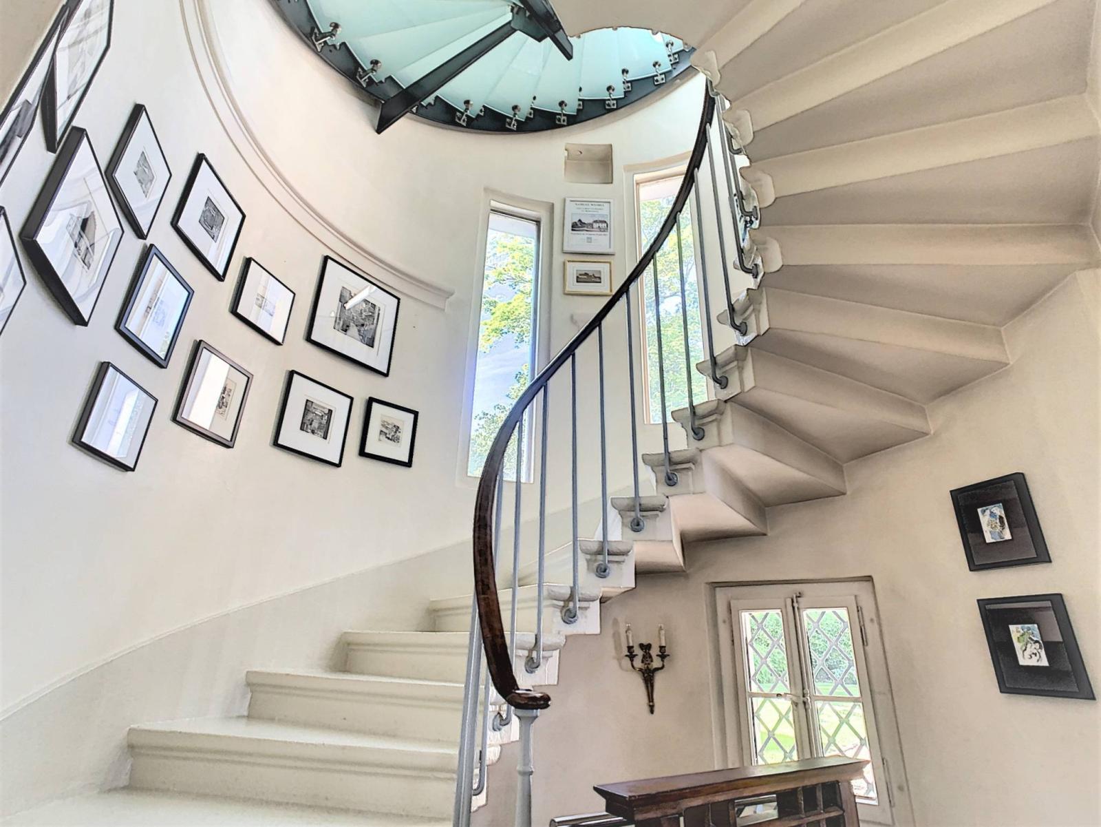 Les étages supérieurs sont accessibles par les escaliers en colimaçon de la tour et offrent 5 chambres à coucher , un bureau et plusieurs salles d'eau.