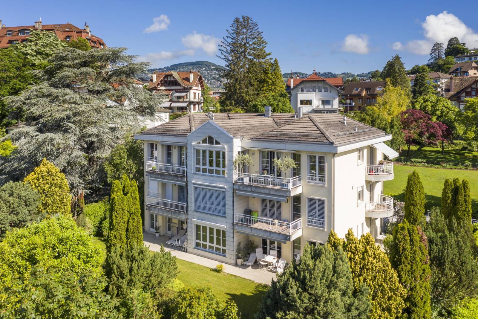 Situé au sein d'une petite copropriété de 3 lots, à la Tour-de-Peilz, ce magnifique appartement occupe une position dominante au sein d'un cadre idyllique très calme et entouré de verdure.