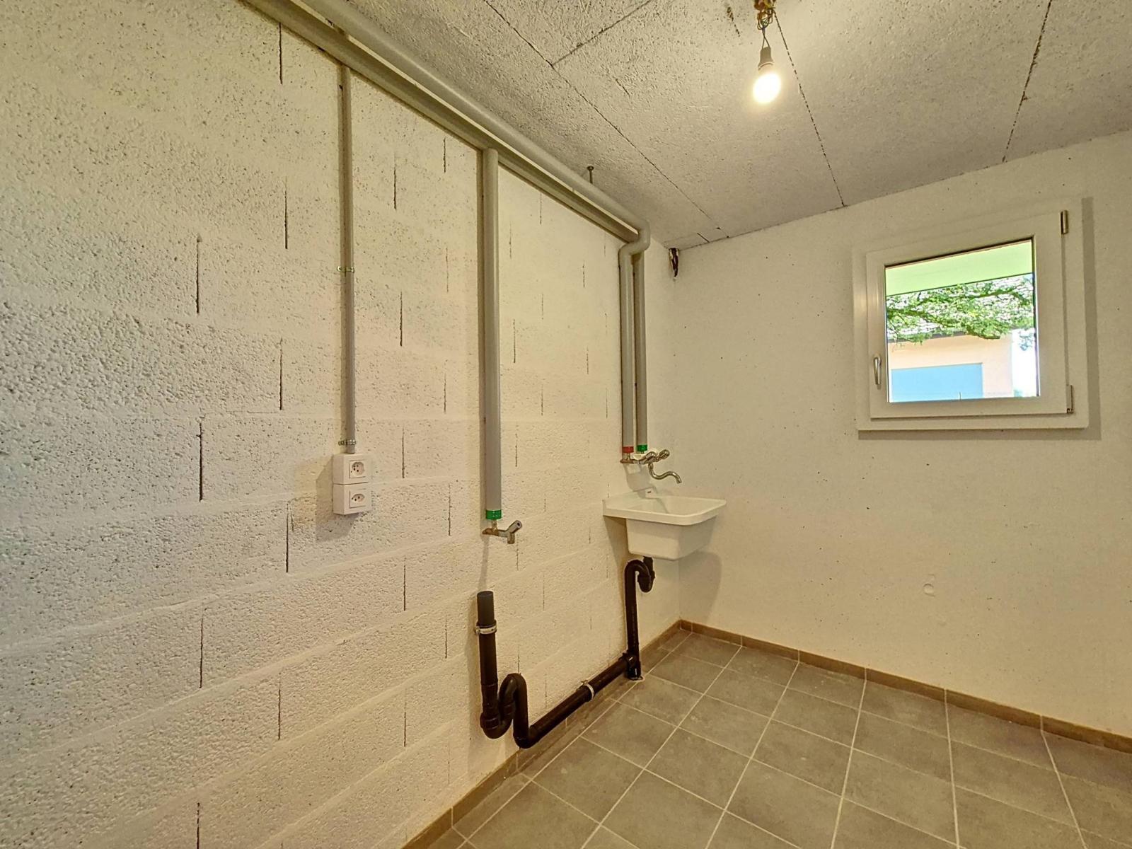 Une cave, un local buanderie privatif, un garage individuel avec porte automatique (CHF 50'000.-) et une place de parc extérieure (CHF 10'000.-) complètent idéalement l'ensemble. À noter que l'appartement est en cours de finition.