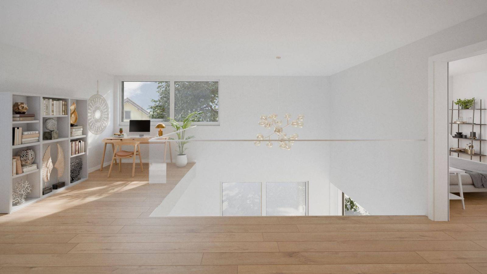 L'étage des villas 1 et 5 est composé de 3 chambres à coucher, d'un coin bureau et de 2 salles de bains.