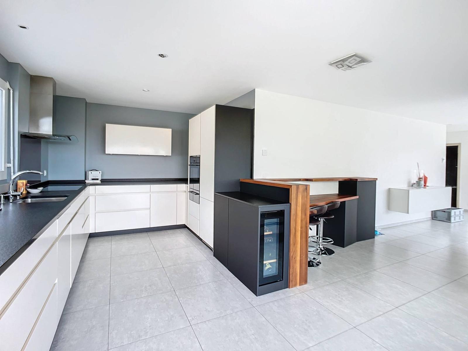 Avec une surface habitable de plus de 140 m², il se compose d’une spacieuse et lumineuse pièce à vivre, alliant séjour et salle à manger avec accès à la véranda et à la terrasse. Pour une praticité absolue, cet espace convivial communique avec une grande cuisine à l’américaine entièrement équipée d’appareils électroménagers de haute qualité.
