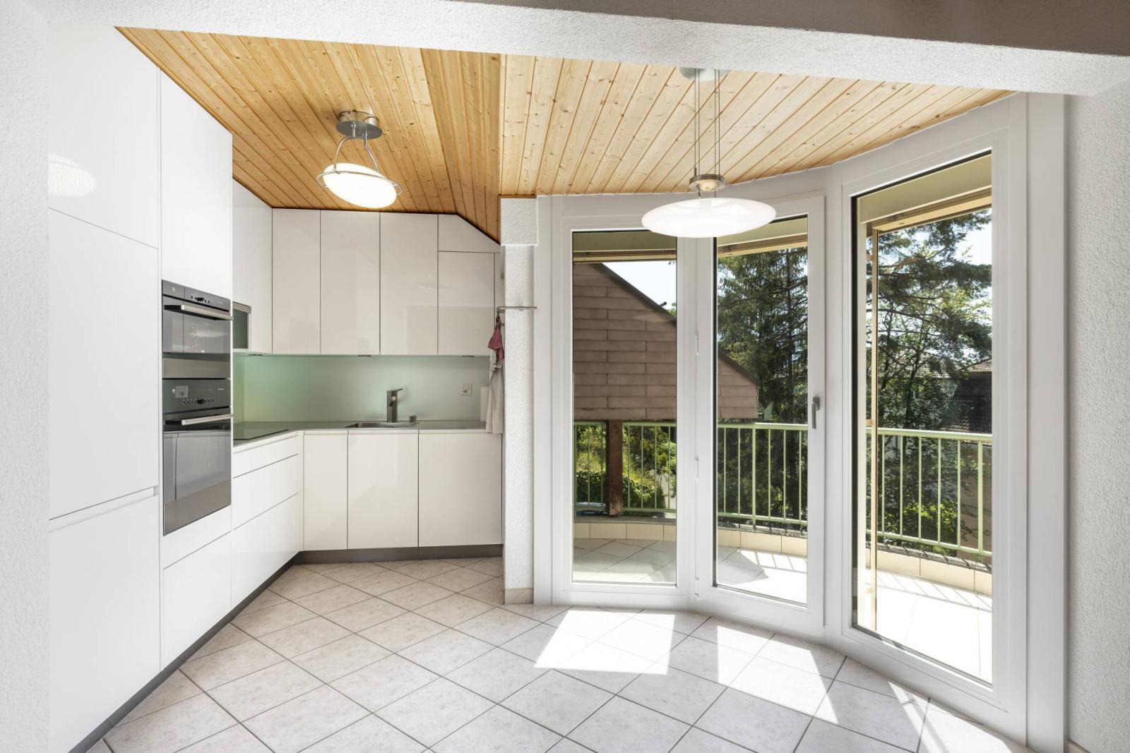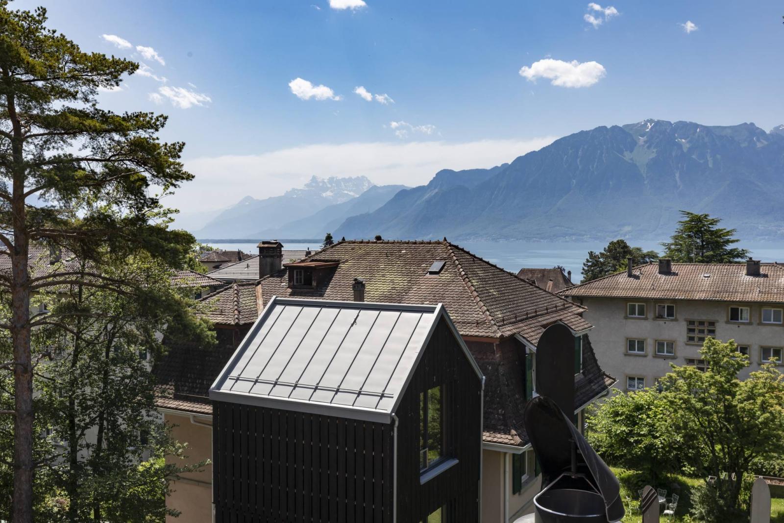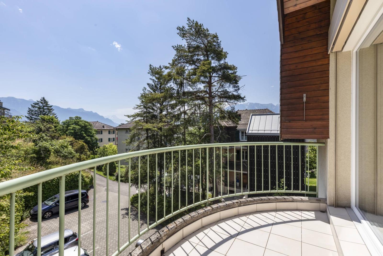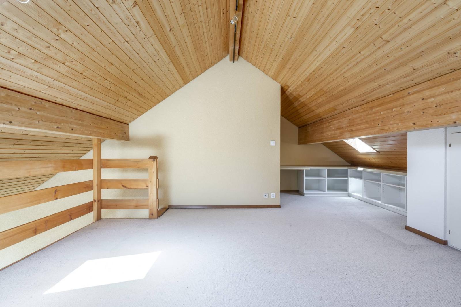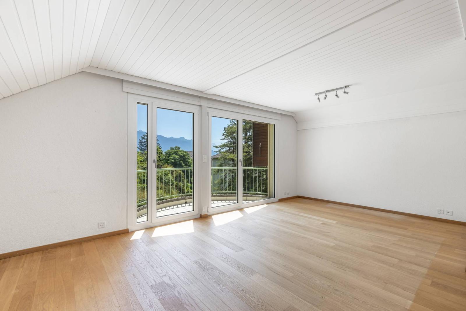D'une surface pondérée d'environ 116 m², cet appartement de 4.5 pièces, actuellement aménagé en grand 3.5 pièces, offre à ses occupants une grande mezzanine d'environ 20 m², trois balcons totalisant environ 16 m² ainsi qu' un grand galetas privatif.
