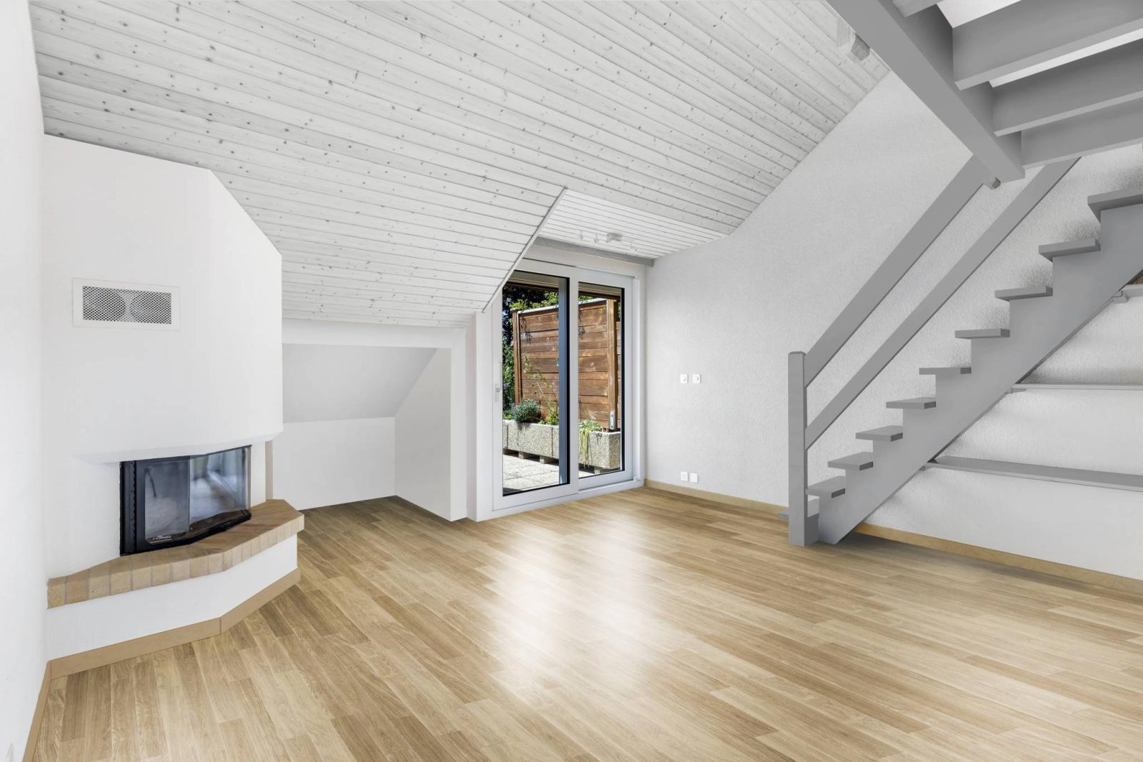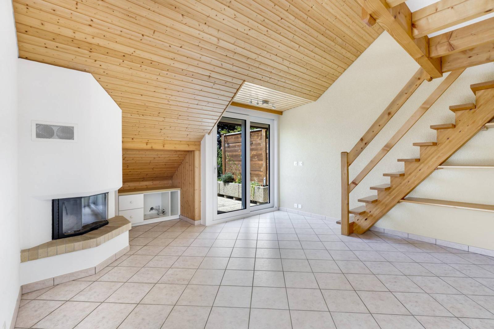 - Un séjour avec cheminée et accès à la mezzanine ;