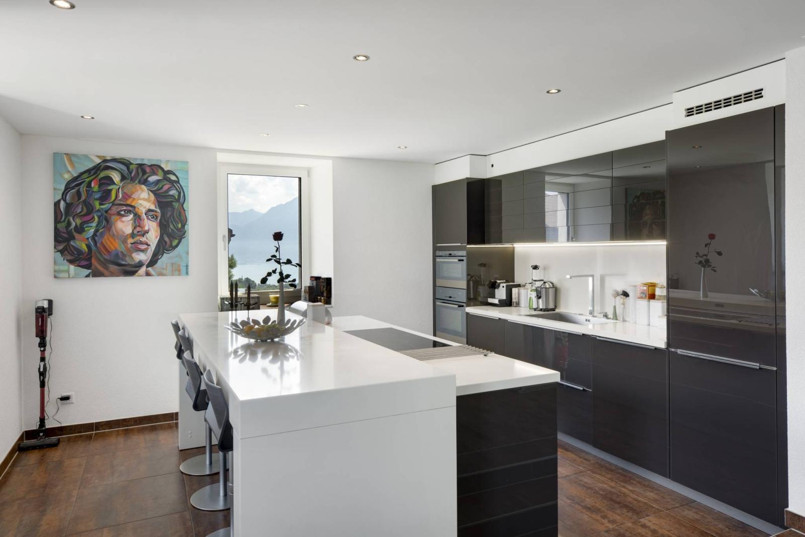 – Cuisine ouverte et grande salle à manger donnant accès à la terrasse est.