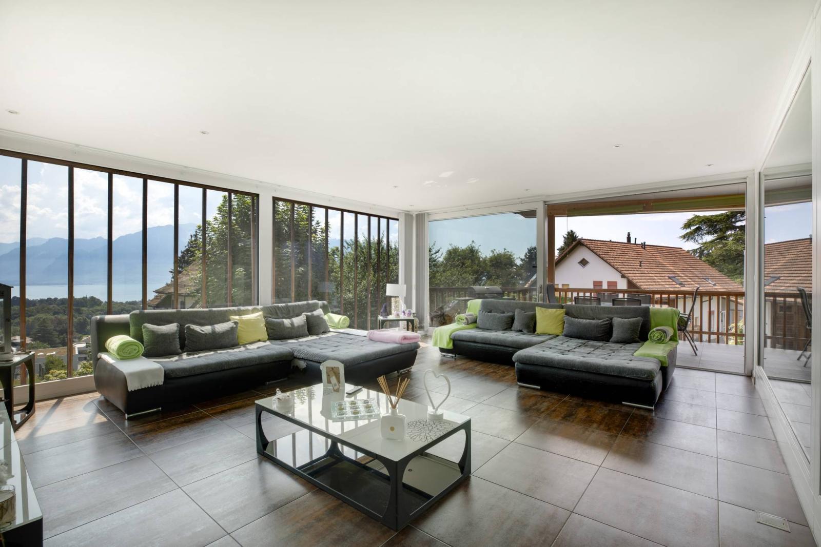 – Grandes baies vitrées avec beau dégagement sur l'extérieur.