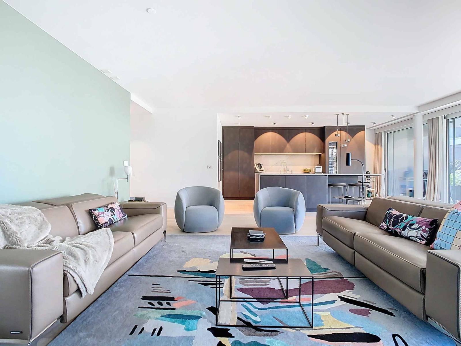 Cet appartement de standing, à l’architecture contemporaine et épurée, a su parfaitement tirer profit du cadre exceptionnel qui l’entoure. Son intérieur décloisonné et ses vastes espaces ouverts sur l'extérieur créent une atmosphère aérée, favorisant confort et convivialité. Il s’habille notamment d’aménagements actuels et sur mesure sans qu’aucuns travaux de rafraichissements ne soient à prévoir.