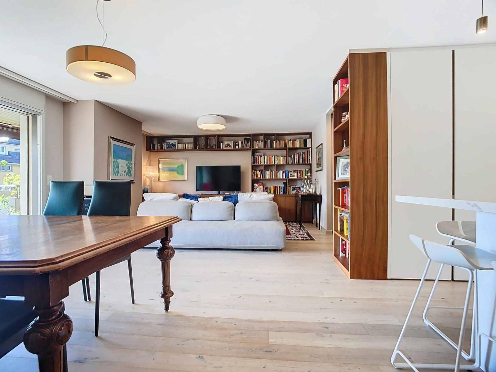 À seulement quelques pas du parc de la Vuachère et des rives du lac Léman, ce lumineux appartement, entièrement rénové en 2020, s'étend sur 123 m². Deux grands balcons totalisant 31 m² prolongent les espaces intérieurs, offrant une belle vue dégagée sur les hauteurs verdoyantes de la ville.