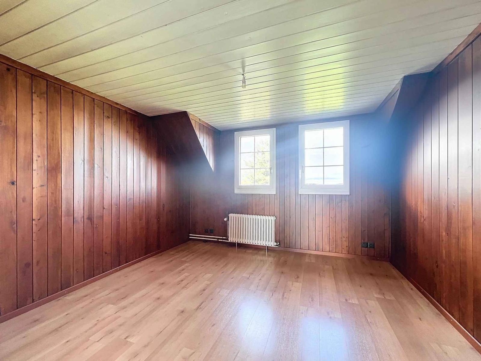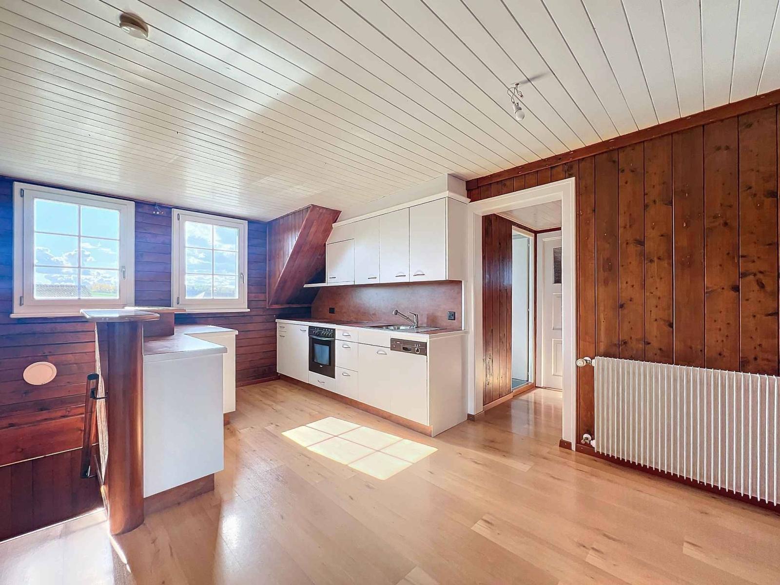 Les combles disposent d'un accès indépendant. Ils abritent un appartement qui actuellement est intégré à l'habitation, mais qui pourrait être rendu totalement indépendant. Il se compose d'une cuisine équipée, de 2 agréables chambres et d'une salle de douche avec velux. Un galetas isolé mais non chauffé pourrait également être aménagé en espace vie supplémentaire.