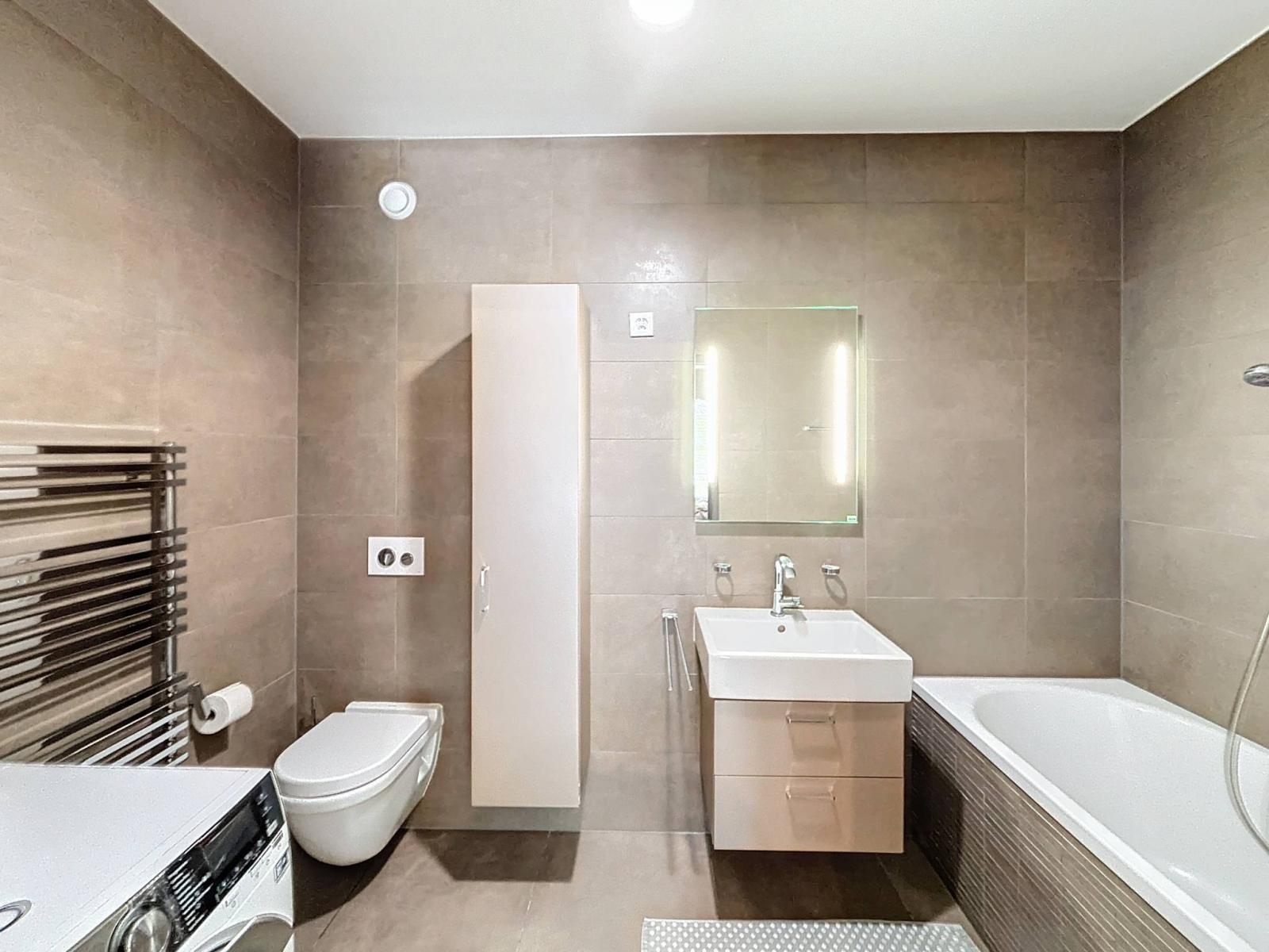 Der Schlafbereich besteht aus zwei Schlafzimmern, eines davon mit angrenzendem Badezimmer. Ein Badezimmer rundet diesen Teil ab.