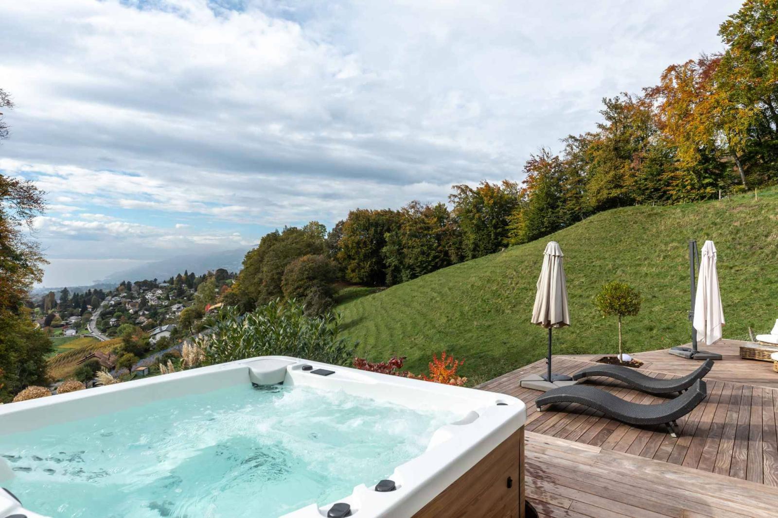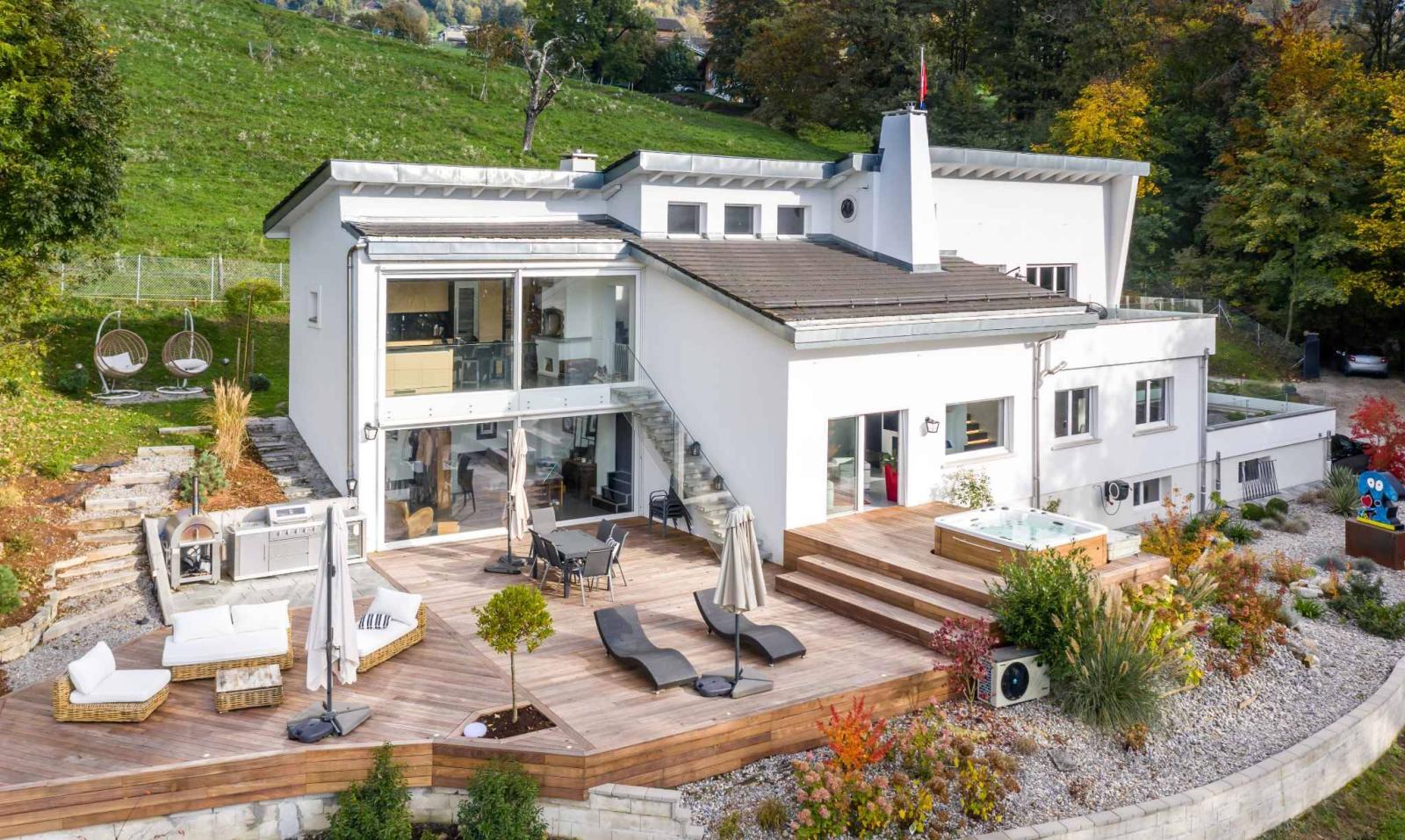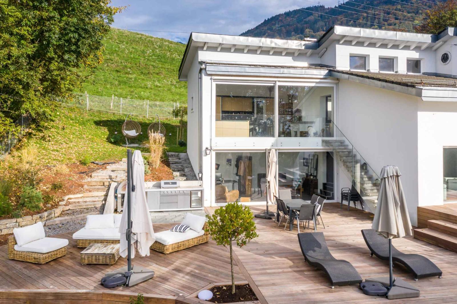 Superbe maison contemporaine individuelle située dans un quartier paisible et très privé à Brent, sur la commune de Montreux. Cette propriété offre une vue à couper le souffle sur le lac et les montagnes, tout en étant à l’abri des regards indiscrets.