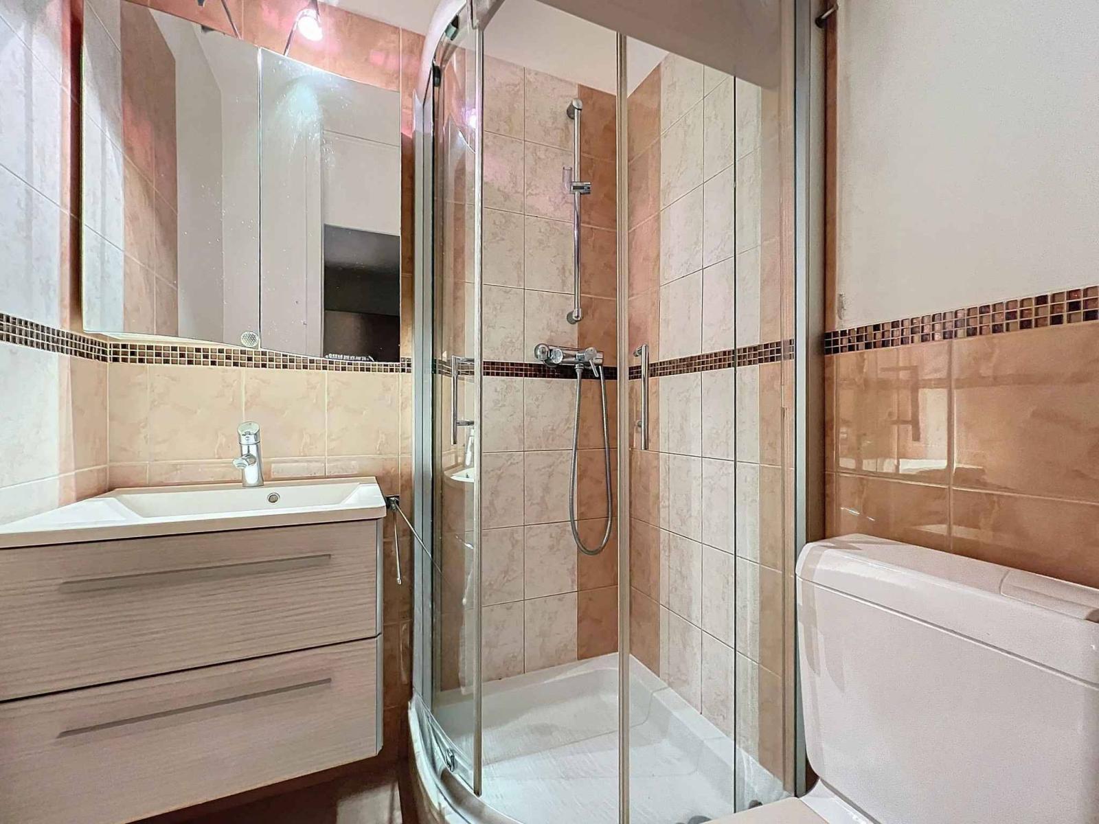 Rénové en 2010, il bénéficie d'une vaste pièce de vie s'ouvrant sur le balcon couvert, d'une cuisine équipée, d'une salle de douche avec WC et d'une agréable chambre à coucher.