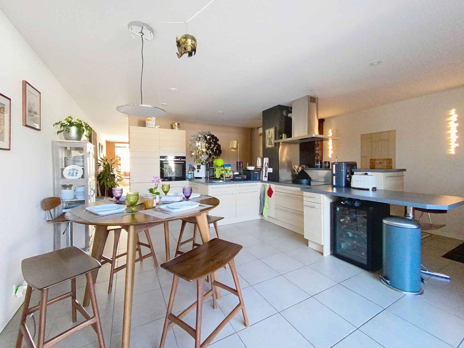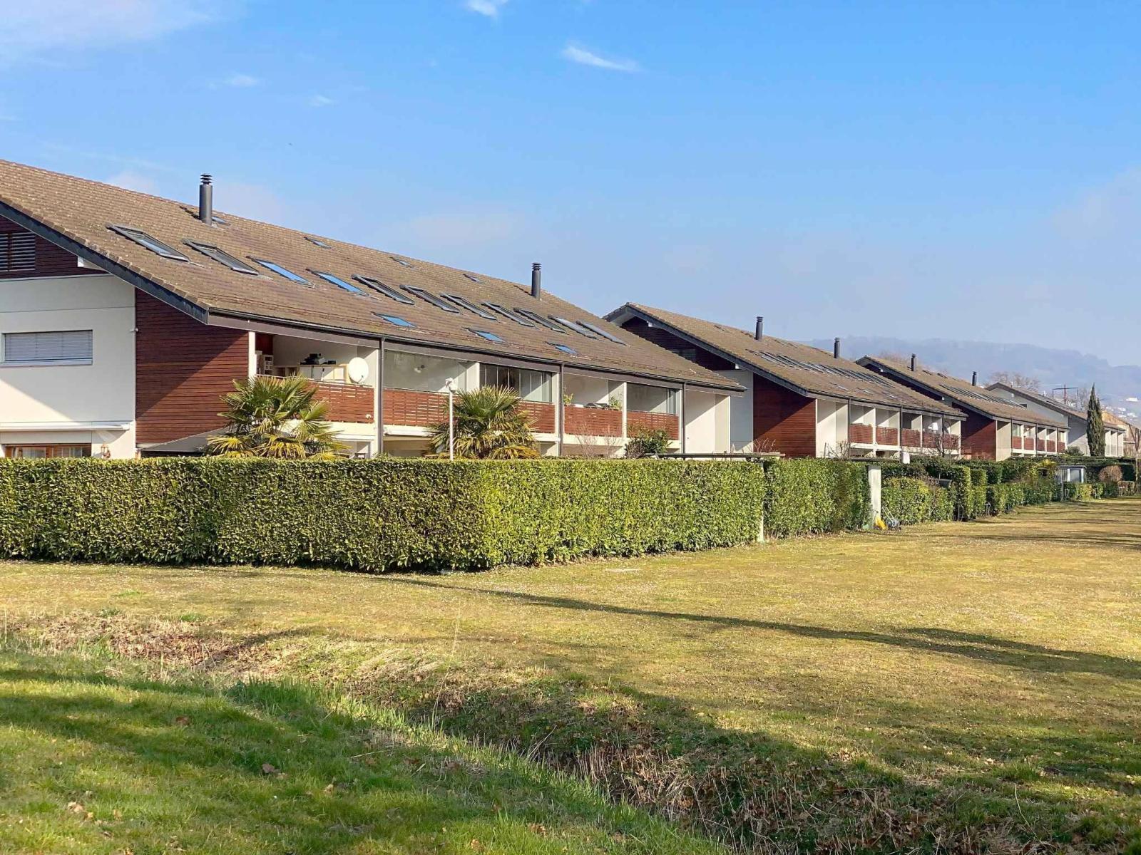 La loggia est couverte et permet de profiter des repas à l'extérieur, les jardins offrent 170 m2, une très belle vue dégagée sur les Alpes et sans vis-à-vis et une exposition sud-ouest.