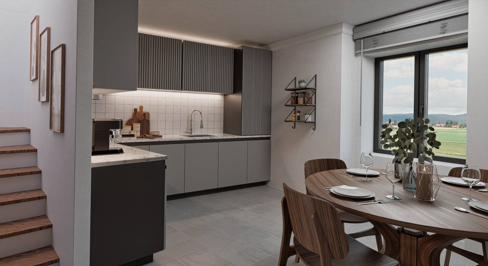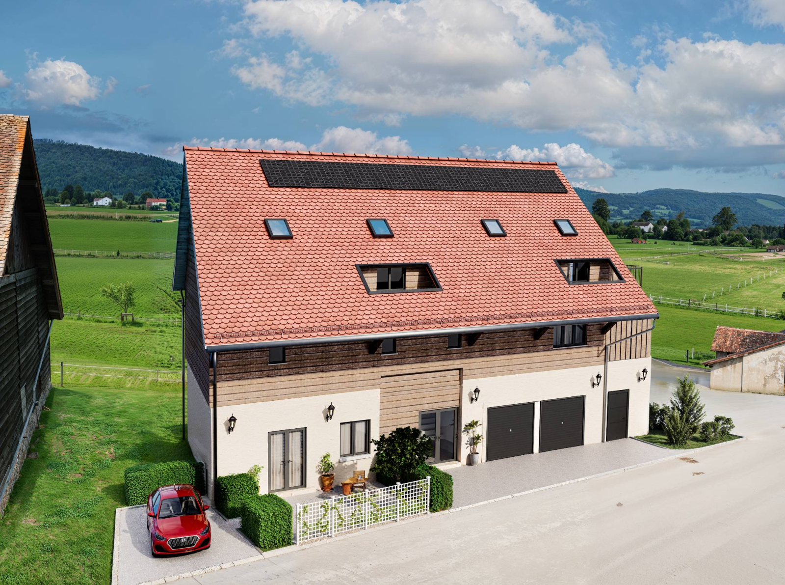 Le projet prévoit la transformation du bâtiment en trois logements avec un garage pour deux voitures et quatre places de parc. La structure repose sur du béton armé et des briques, avec un chauffage par pompe à chaleur air/eau et une production d’eau chaude via panneaux solaires. Les menuiseries extérieures en PVC avec triple vitrage, l’isolation thermique performante et des finitions soignées complètent l’ensemble.