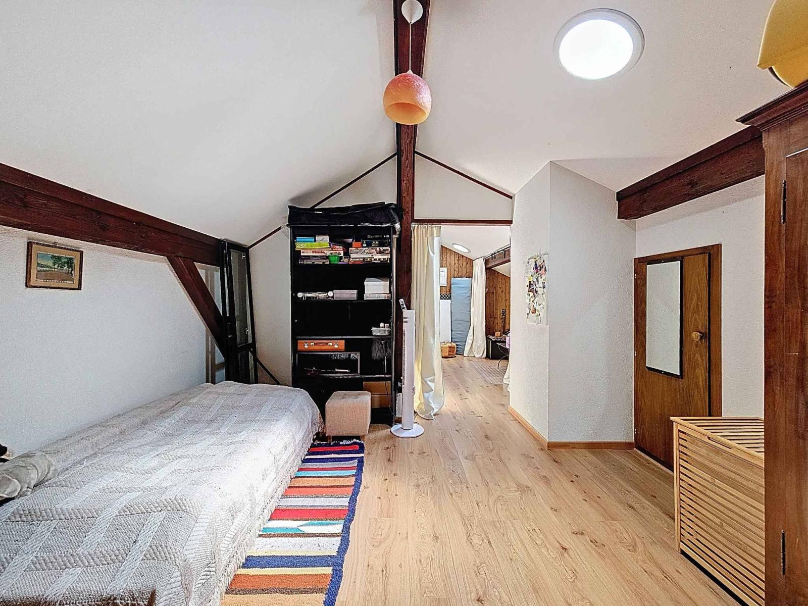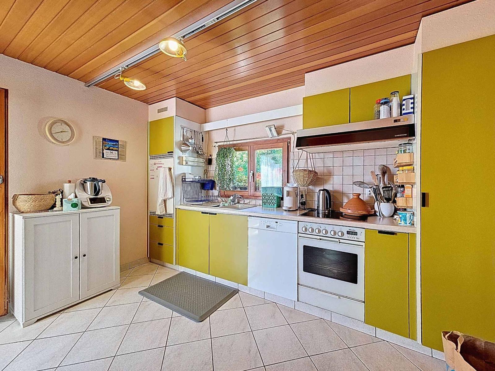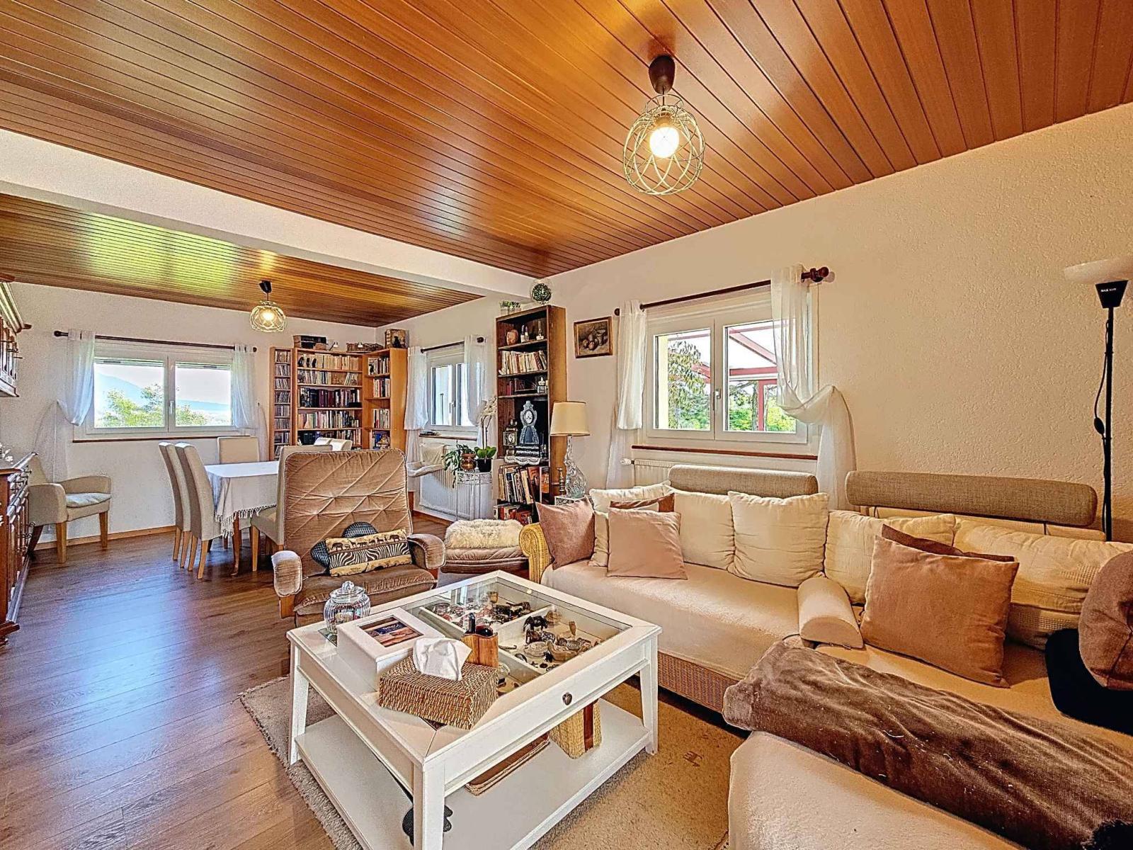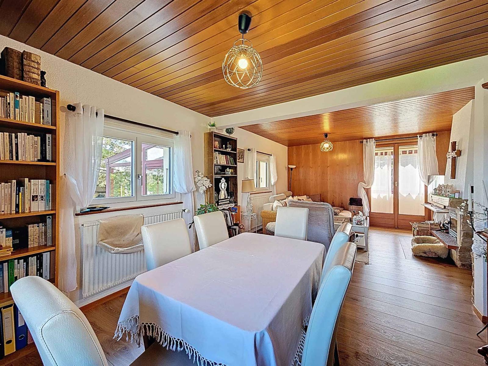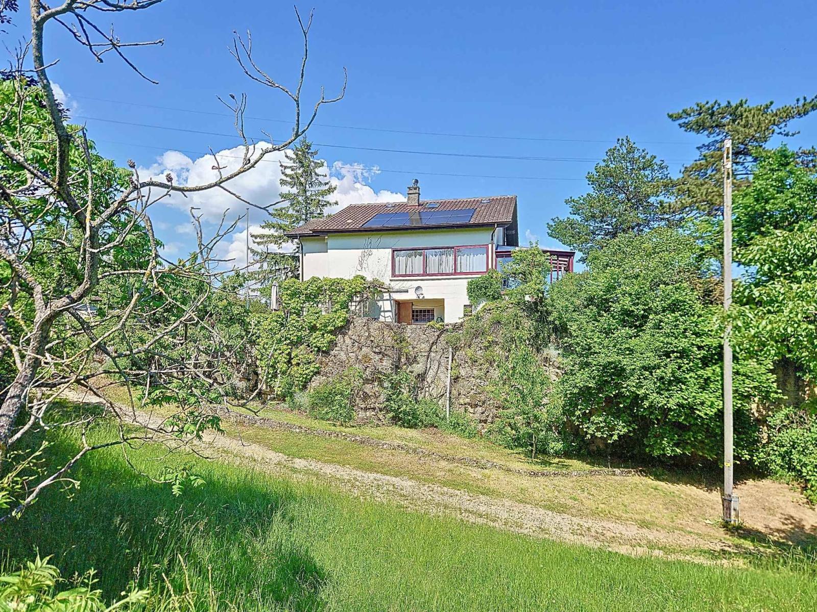 Érigée en 1954 sur une parcelle de 1’022 m², cette maison individuelle de 4.5 pièces offre une surface habitable d’environ 115 m² répartie sur trois niveaux. Agrandie et soigneusement entretenue au fil des années, elle allie charme, confort et performance énergétique.
