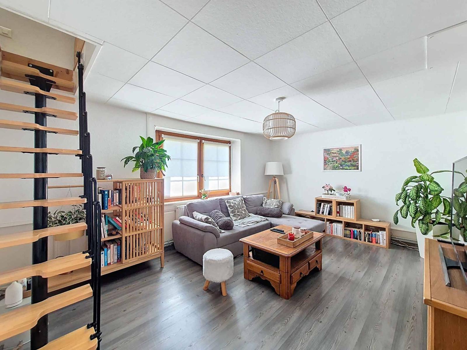 Appartement duplex 4,5 pièces (étage) : accessible par deux entrées, dont une attenante à la vaste grange exploitable, il propose un séjour généreux avec accès à une chambre en mezzanine, une cuisine habitable entièrement équipée, une salle de douche et deux chambres à coucher supplémentaires.