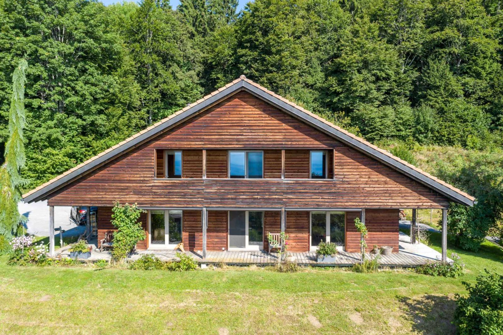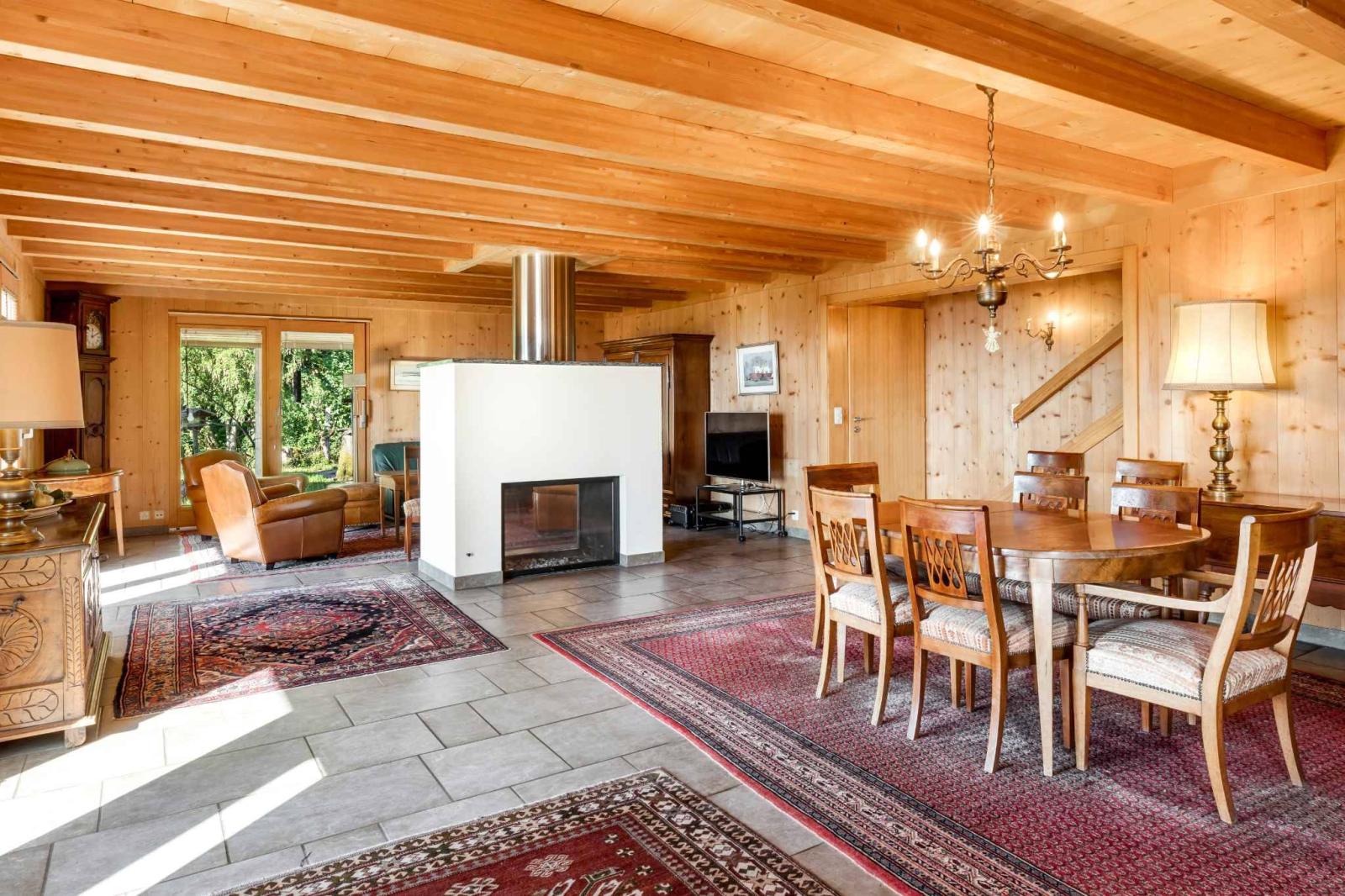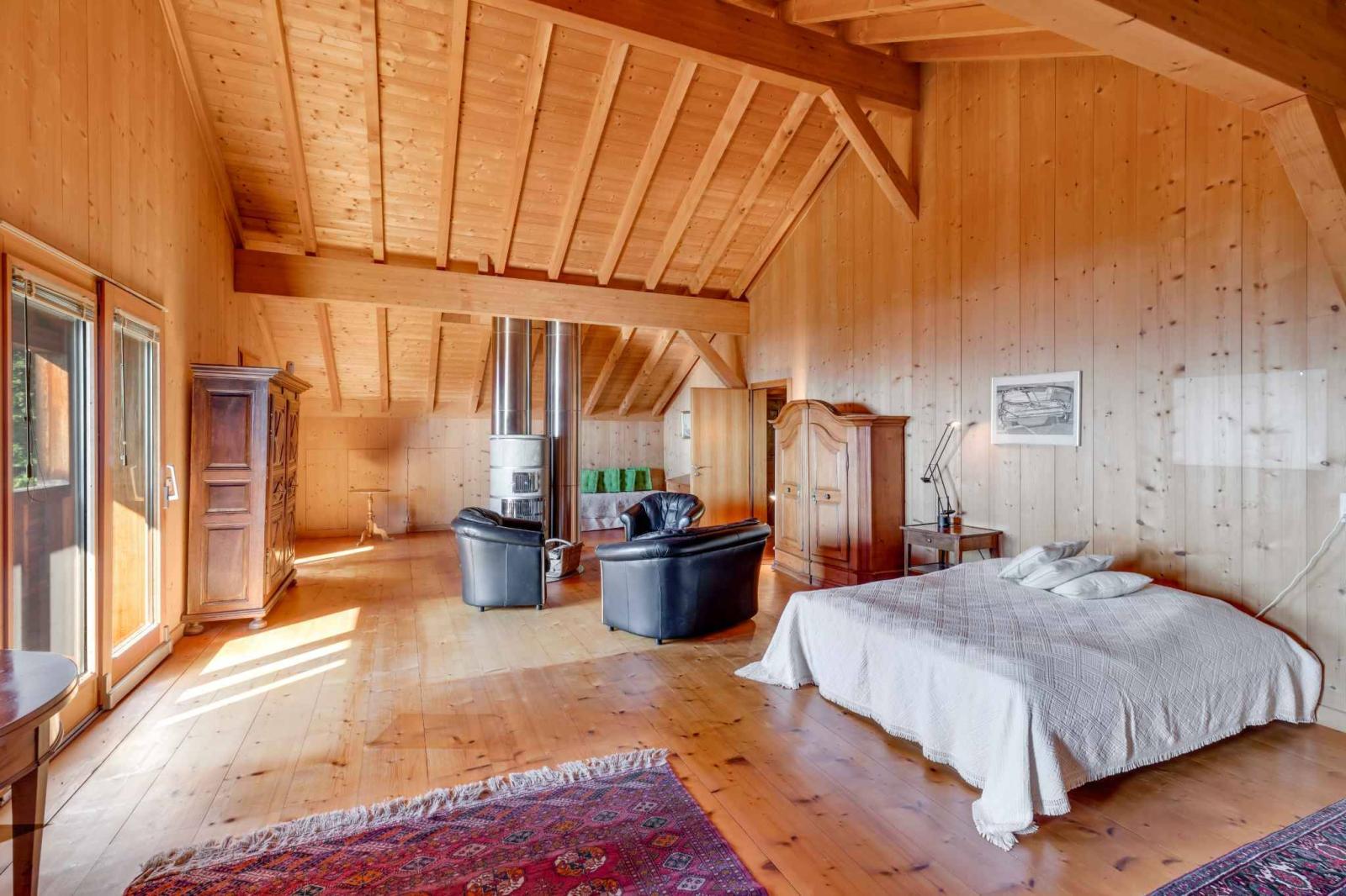 L’ensemble se compose de deux chalets indépendants. Le chalet principal, construit en 2001 en bois massif, développe près de 230 m² habitables répartis sur deux niveaux et complétés par un sous-sol excavé. Son vaste séjour avec cheminée, sa cuisine équipée et ses espaces lumineux prolongés par une large terrasse en bois invitent à profiter pleinement du panorama. À l’étage, une grande pièce sous charpente peut être aménagée en plusieurs chambres selon les besoins.