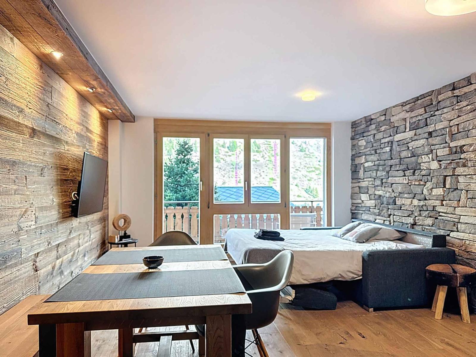 Ce magnifique appartement secondaire rénové dispose d'une chambre avec un lit double. Le salon et la salle à manger séduisent parl la cuisine moderne et entièrement équipée, le canapé-lit confortable pouvant être transformé en lit (160 × 200 cm) et la table à manger. Il y a également une salle de bains avec une douche.