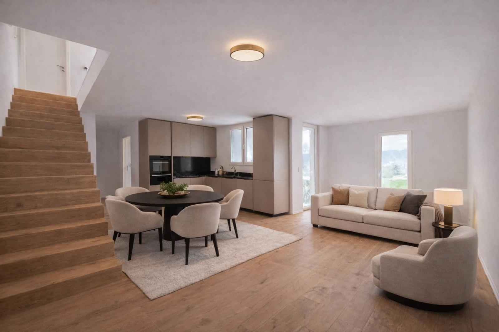 Répartie sur trois niveaux, cette villa séduit par sa distribution bien pensée et ses finitions de standing. Au rez-de-chaussée, un hall d’entrée avec un local technique et buanderie vous accueille. L’espace de vie principal se situe au premier étage : un séjour lumineux avec coin repas, une cuisine ouverte haut de gamme (CHF 45'000.-) baignée de lumière, une chambre ainsi qu’une salle de bain moderne.