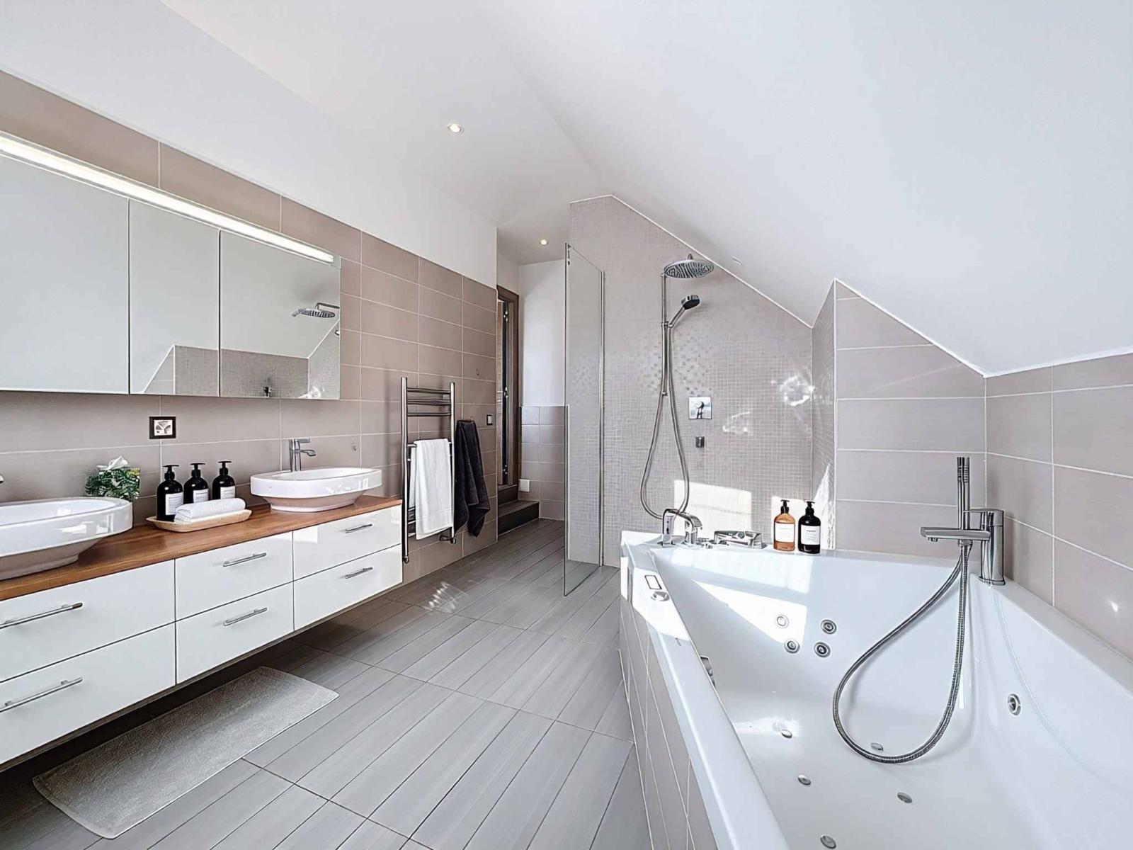 À l’entresol, la suite parentale se dévoile comme un refuge intime : une chambre lumineuse avec accès au balcon, un spacieux dressing et une grande salle de bains invitant à la détente, agrémentée d’un jacuzzi, pour des instants hors du temps.