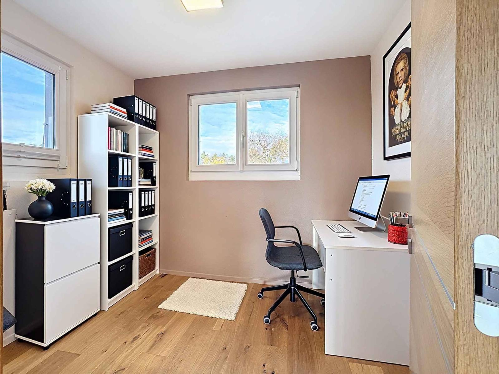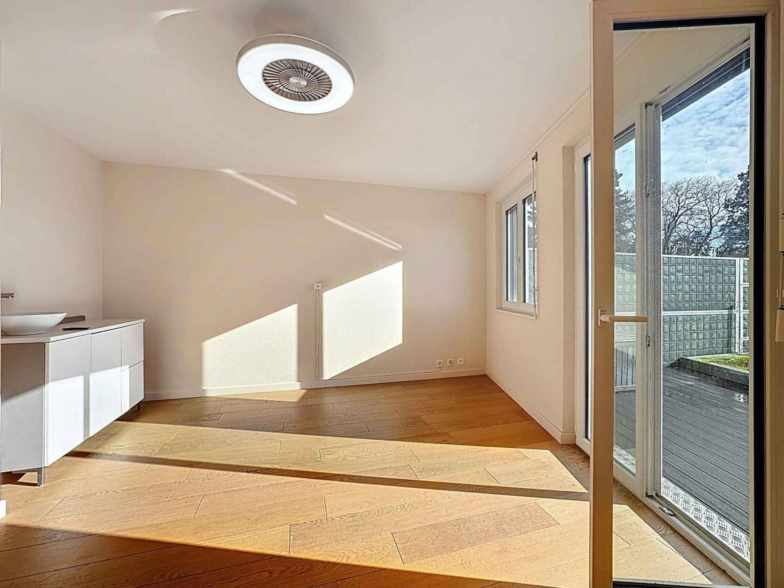 À Tolochenaz, au cœur d’un environnement paisible et privilégié, cette villa semi-indépendante déploie ses volumes avec grâce sur une parcelle soigneusement aménagée, offrant une vue sur le lac Léman et les Alpes.