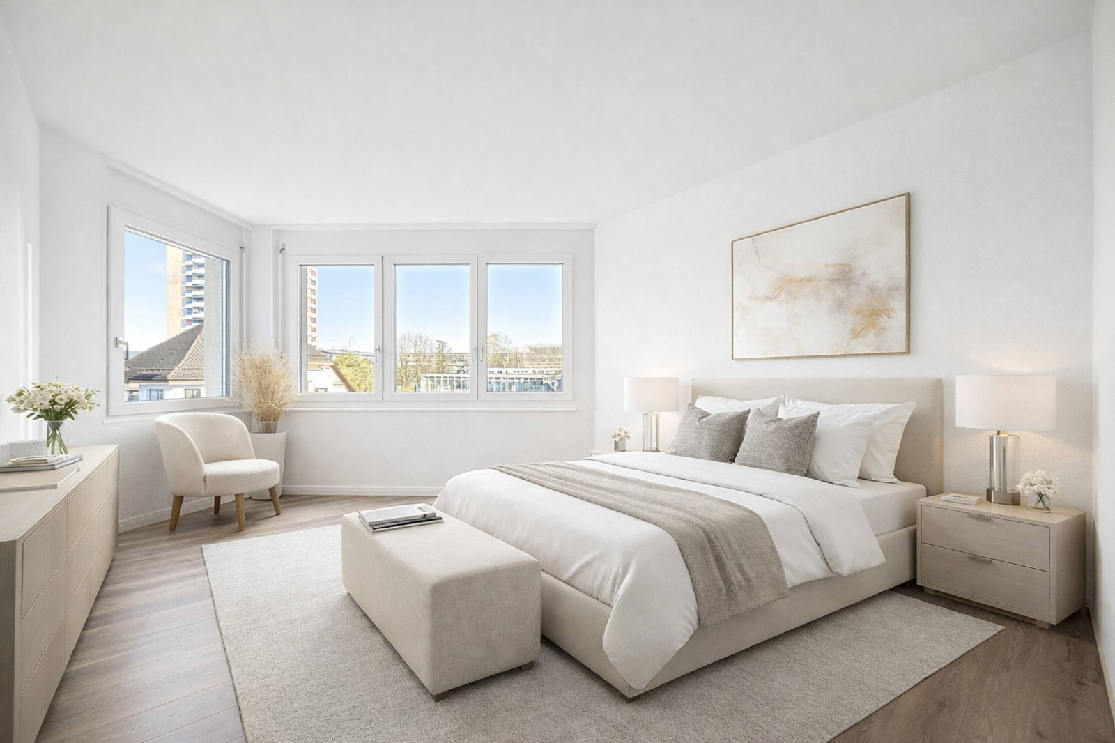 Au sein d’une résidence érigée en 1989, cet appartement d’environ 150 m², entièrement rénové en 2025 avec des matériaux de qualité, offre un équilibre rare entre volumes, lumière et confort contemporain.