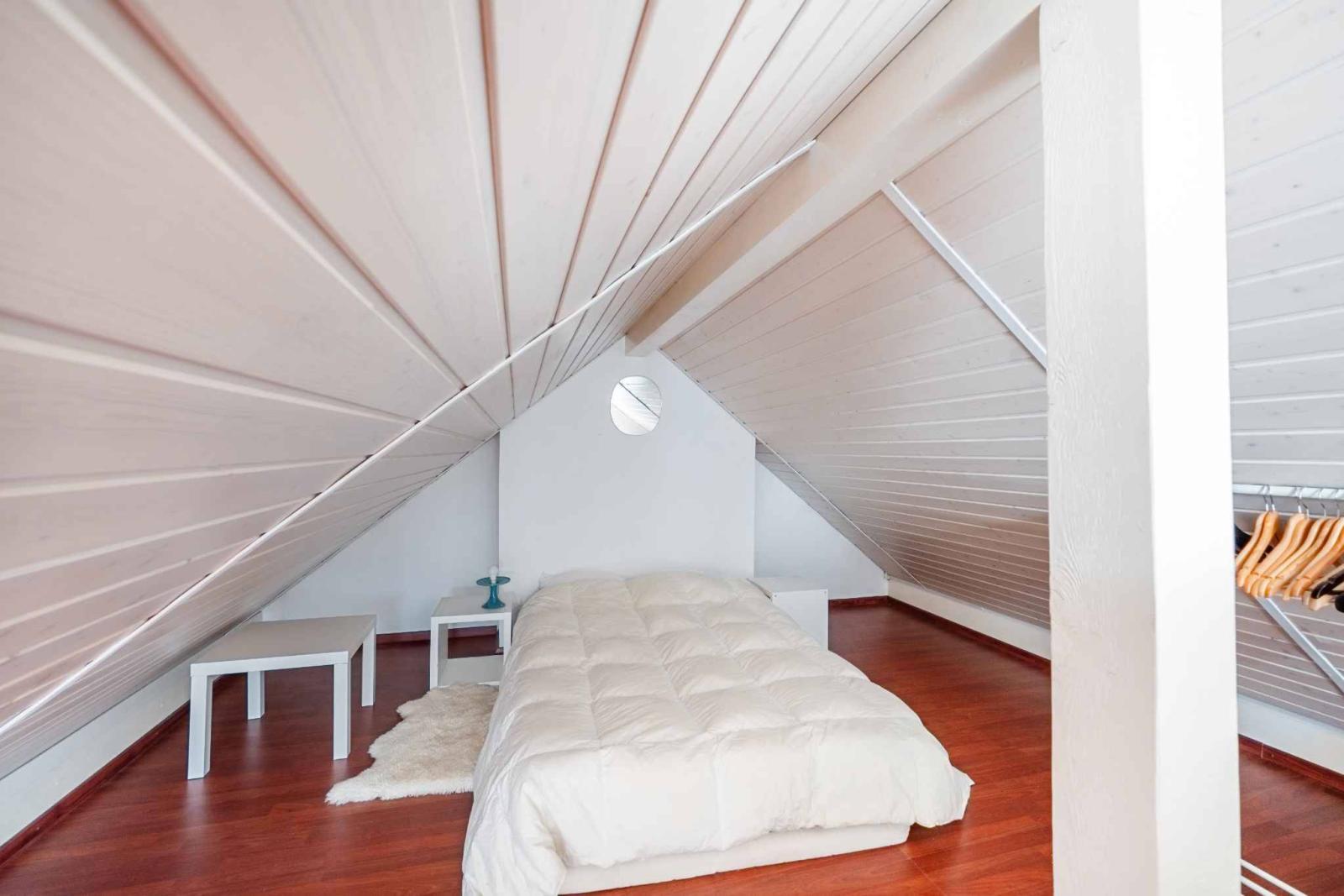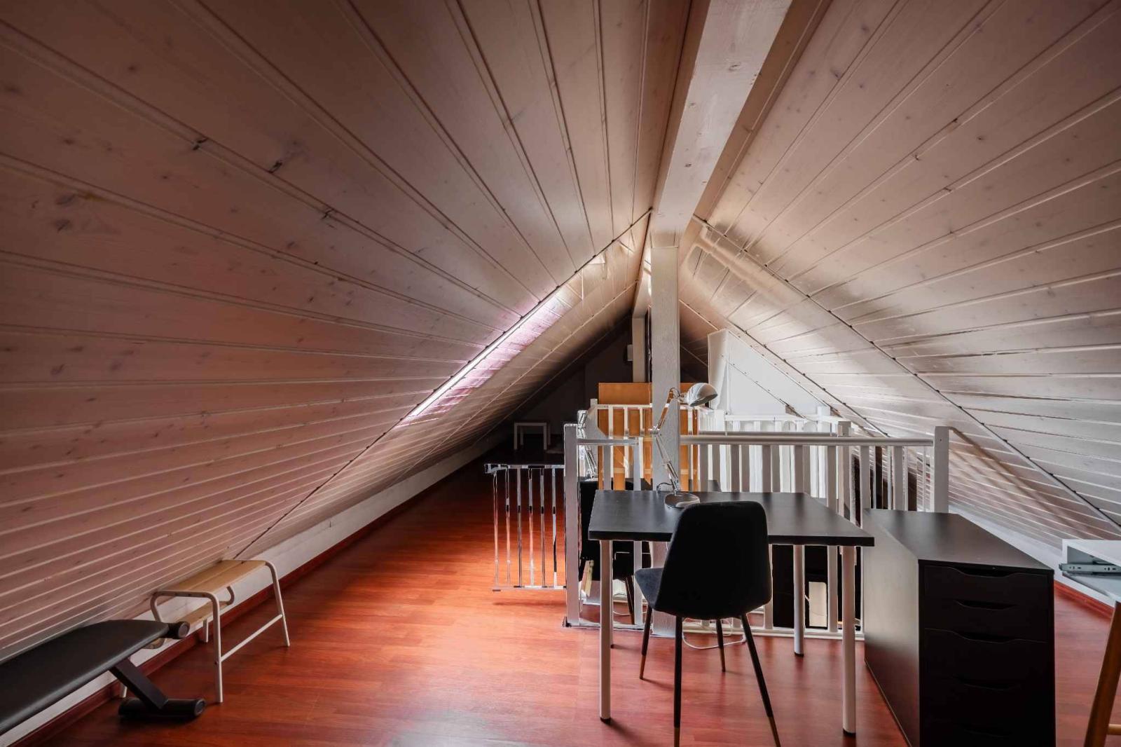 La partie nuit comprend trois chambres ainsi qu’une salle de bains avec baignoire. À l’étage, une mezzanine spacieuse offre un espace supplémentaire pouvant être aménagé en bureau, coin lecture ou espace détente selon les besoins.