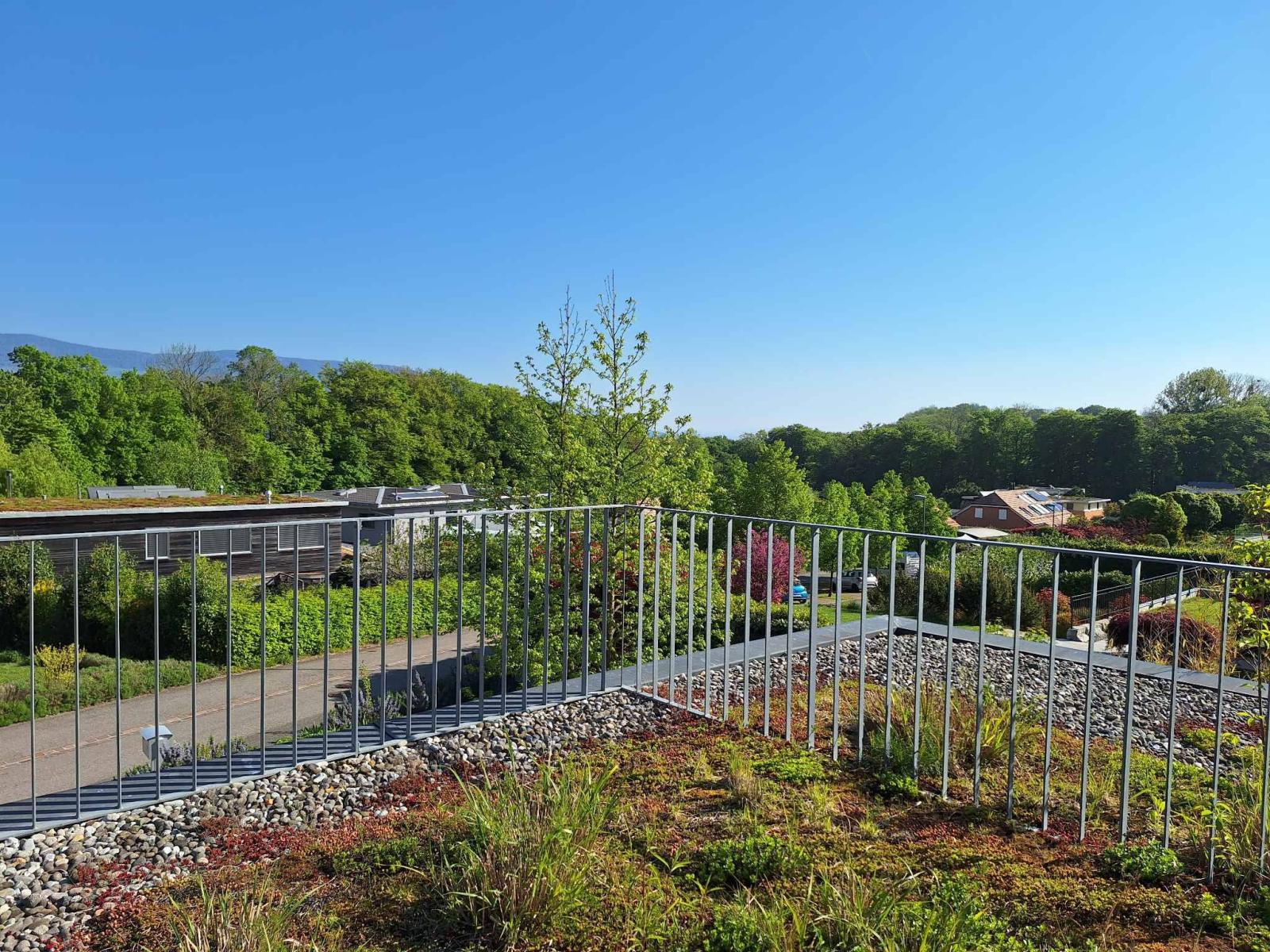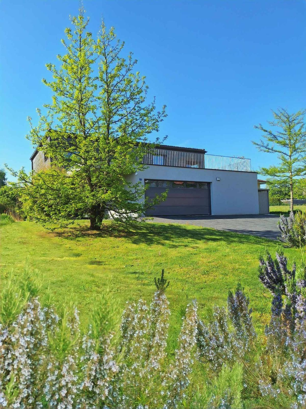 Les extérieurs constituent un véritable écrin de verdure avec un terrain soigneusement aménagé et arborisé de diverses essences. Le jardin comprend une prairie fleurie, un potager surélevé ainsi que plusieurs aménagements paysagers. La propriété offre également différents espaces de détente extérieurs, dont une spacieuse terrasse orientée plein sud d’environ 52 m², un balcon de 24 m², une terrasse supplémentaire au-dessus du garage de 24 m² ainsi qu’une pergola d’environ 40 m², permettant de profiter pleinement des lieux tout au long de la journée (soit un total d’environ 140 m² de terrasses).
