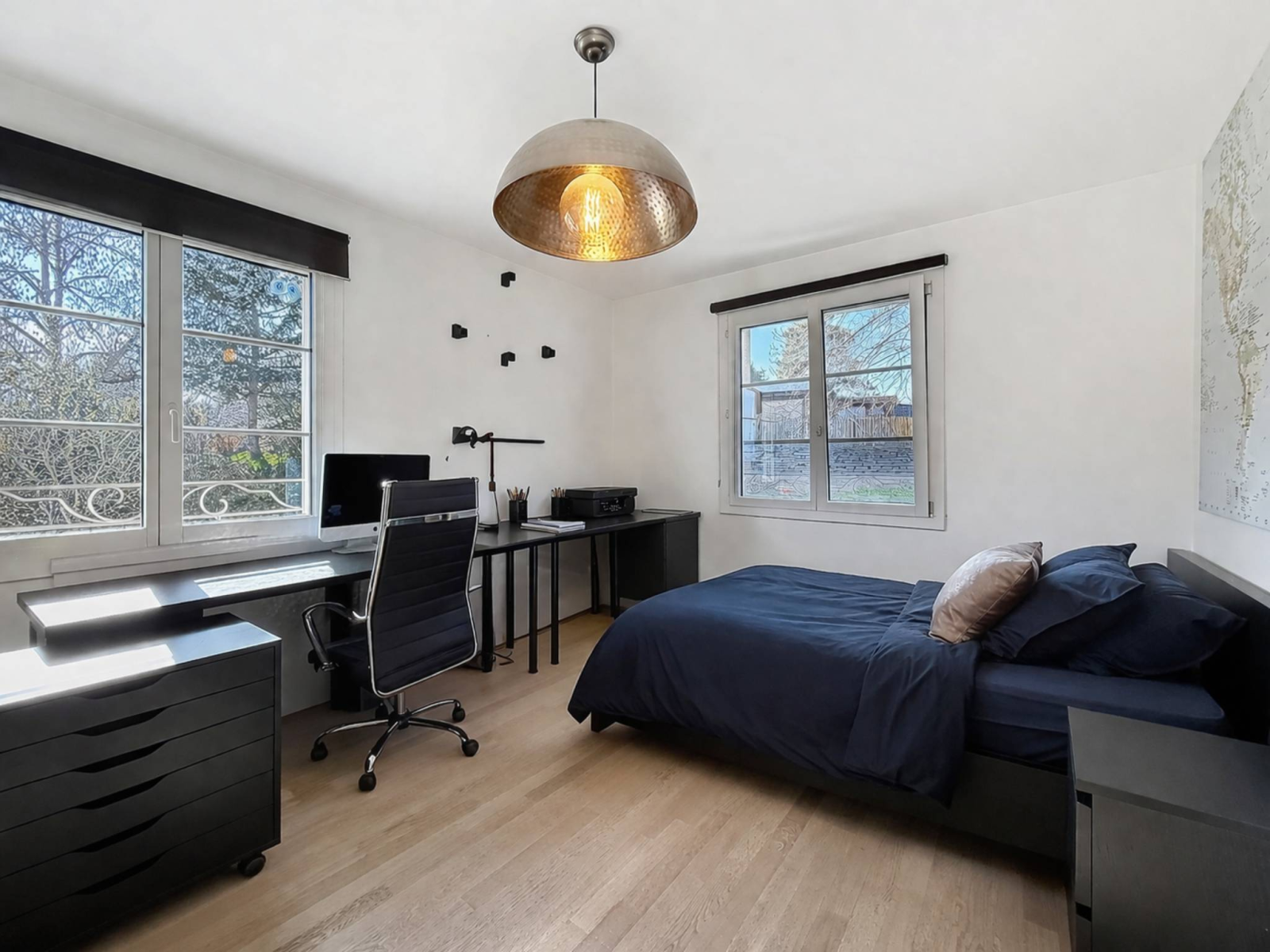 L’étage propose quatre chambres aux volumes harmonieux, dont une belle suite parentale avec salle de douche attenante et balcon privatif orienté sud. À cet étage, une salle de douche avec baignoire complète les espaces nuit. Les espaces ont été conçus avec cohérence et fonctionnalité, dans un esprit à la fois familial et élégant.