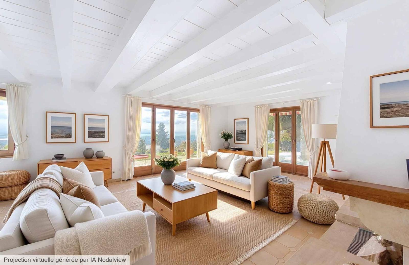 Les extérieurs ont été pensés pour bénéficier pleinement de la vue. Une grande terrasse accessible depuis la cuisine et le salon permet ainsi de profiter du panorama durant la saison chaude.