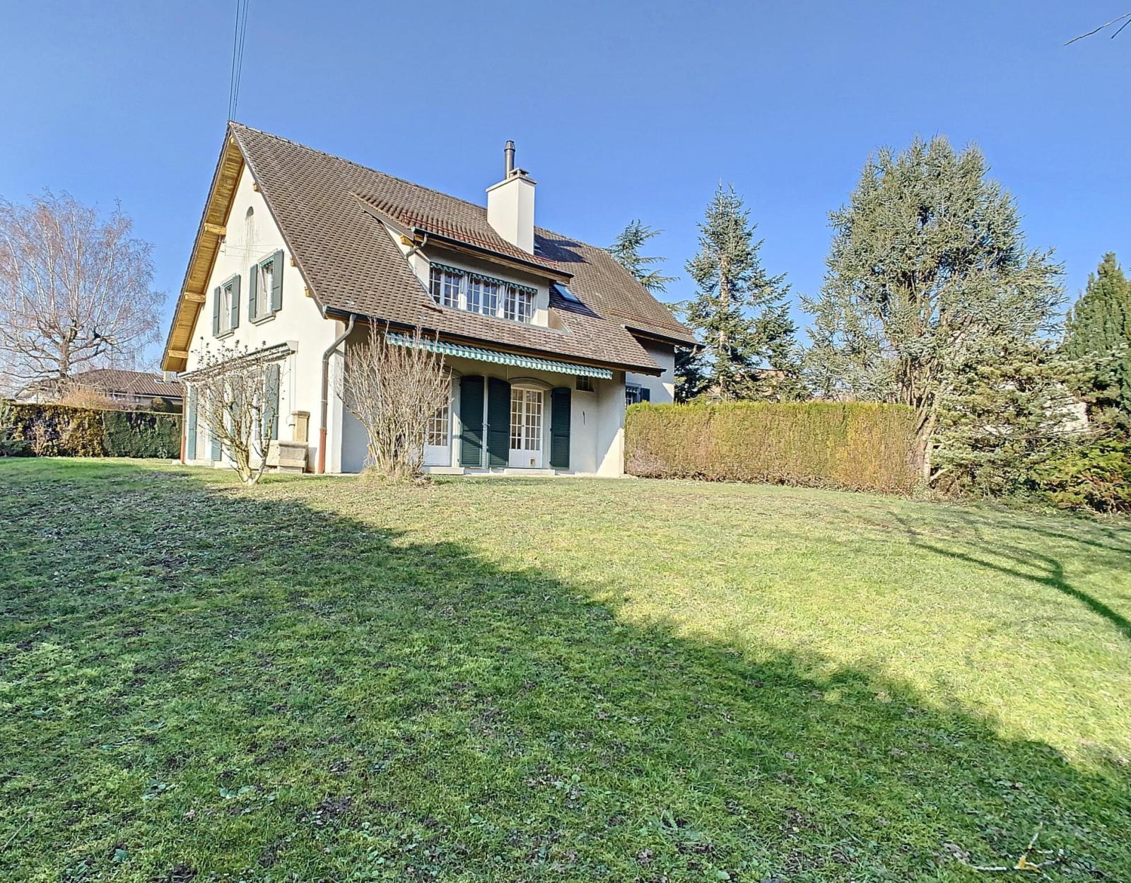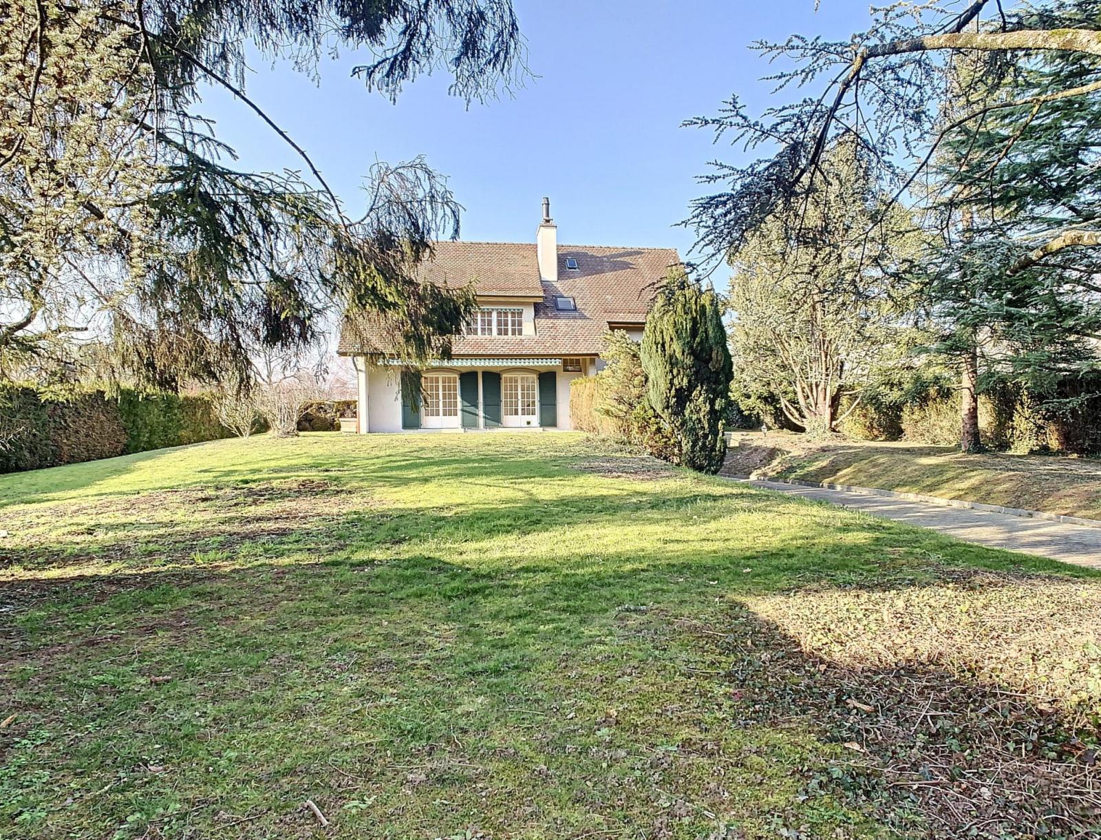 Dans un écrin de verdure et à l'abri des regards, cette villa est implantée au nord d'une parcelle de 1'588m³, lui faisant bénéficier d'une belle surface de jardin devant la maison.