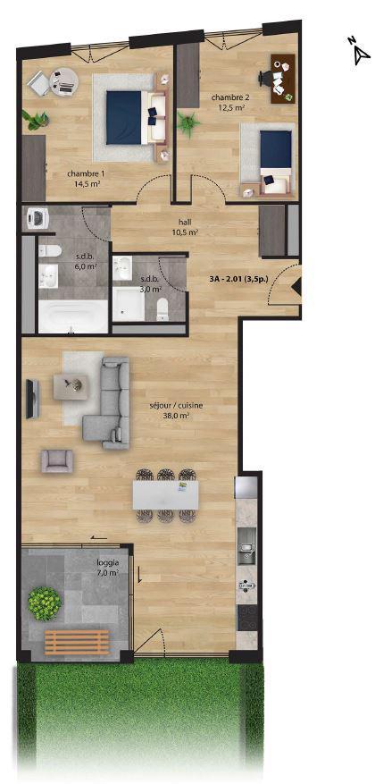 Lot 3A.2.01 - 3.5 pièces au rez