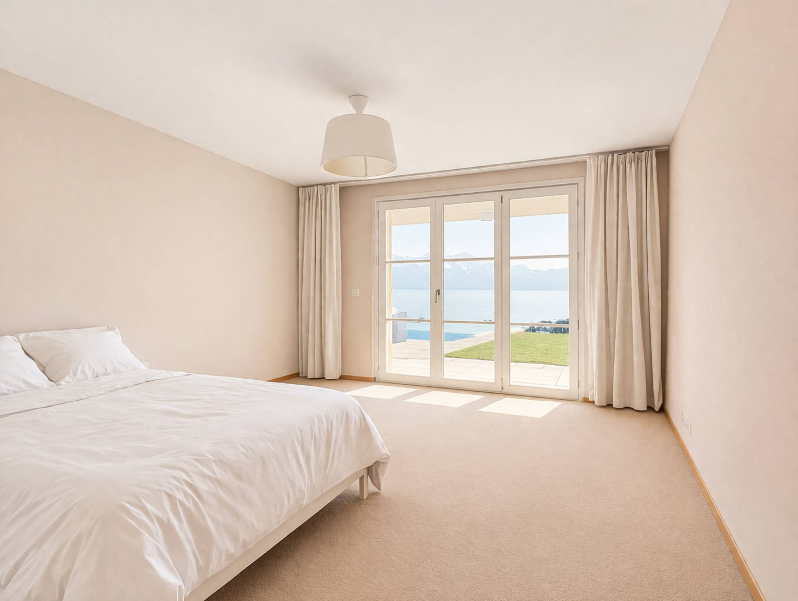 Les espaces de réception, baignés de lumière naturelle grâce à de larges ouvertures, s’ouvrent de plain-pied sur les terrasses, prolongeant naturellement les espaces de vie vers l’extérieur et mettant en valeur le panorama exceptionnel.