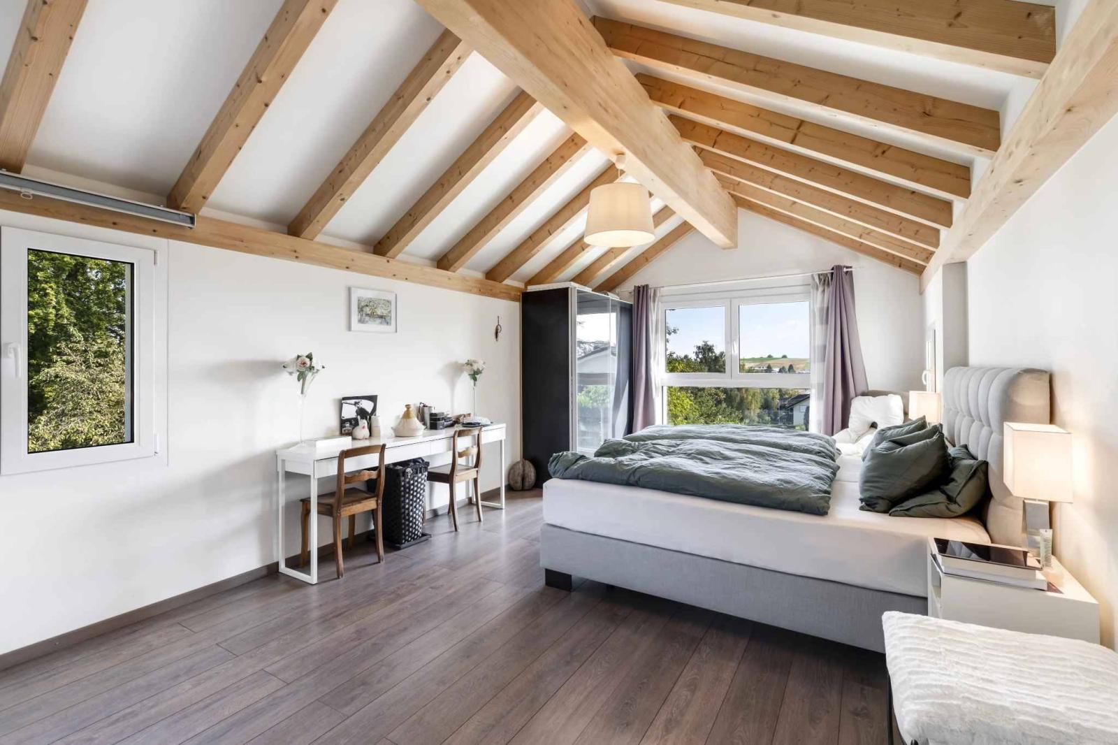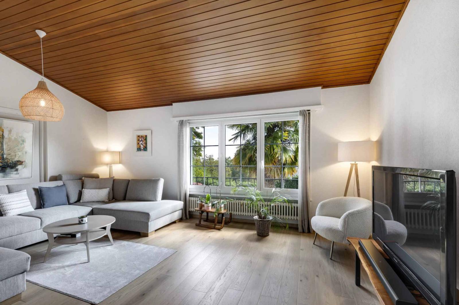 Édifiée sur une parcelle de près de 1’000 m² idéalement orientée plein sud, la villa déploie une architecture en demi-niveaux qui sublime les volumes et offre une circulation fluide entre les espaces. Chaque pièce bénéficie d’une luminosité exceptionnelle, magnifiée par de larges ouvertures et des perspectives soigneusement pensées.